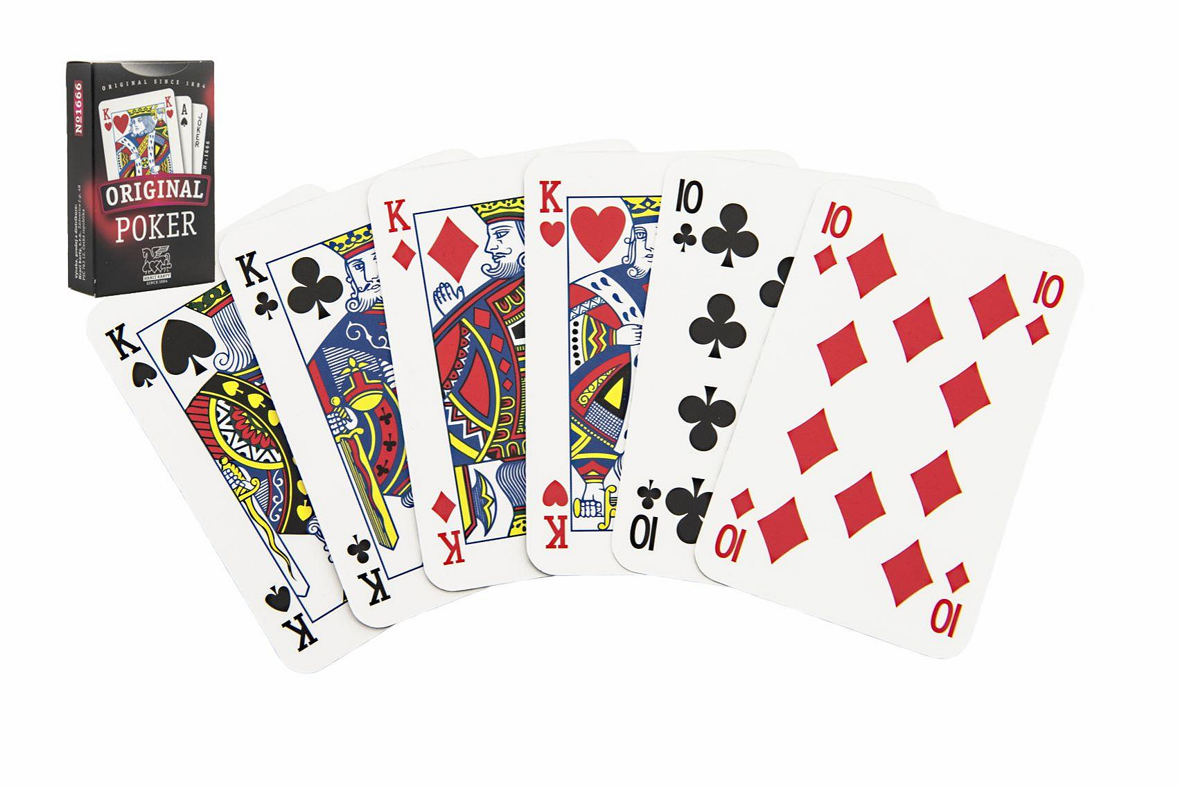 Poker je hra určená především pro hry Poker a Wheels. Univerzální mezinárodní vzor umožňuje použití nejen pro klasický Poker či Texas Hold’em, ale je vhodný pro celou paletu karetních her. Obsahuje 54 listů. V papírové krabičce 6x9 cm.