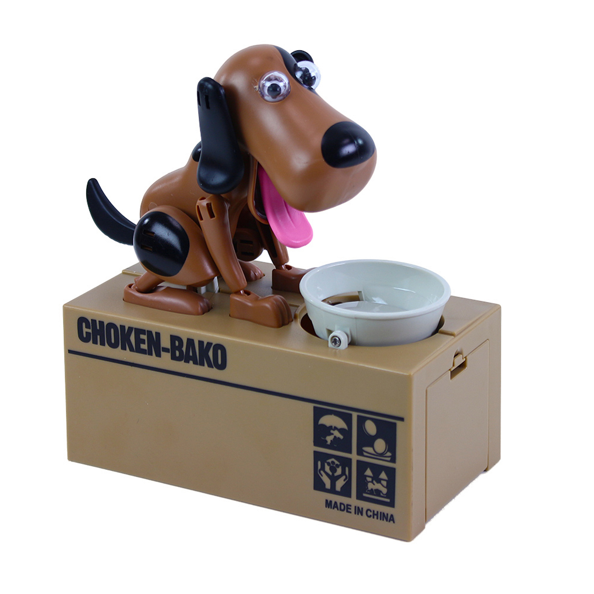 Položte minci na misku a pejsek ji dostane až dovnitř pokladničky. Perfektní dárek, který naučí děti