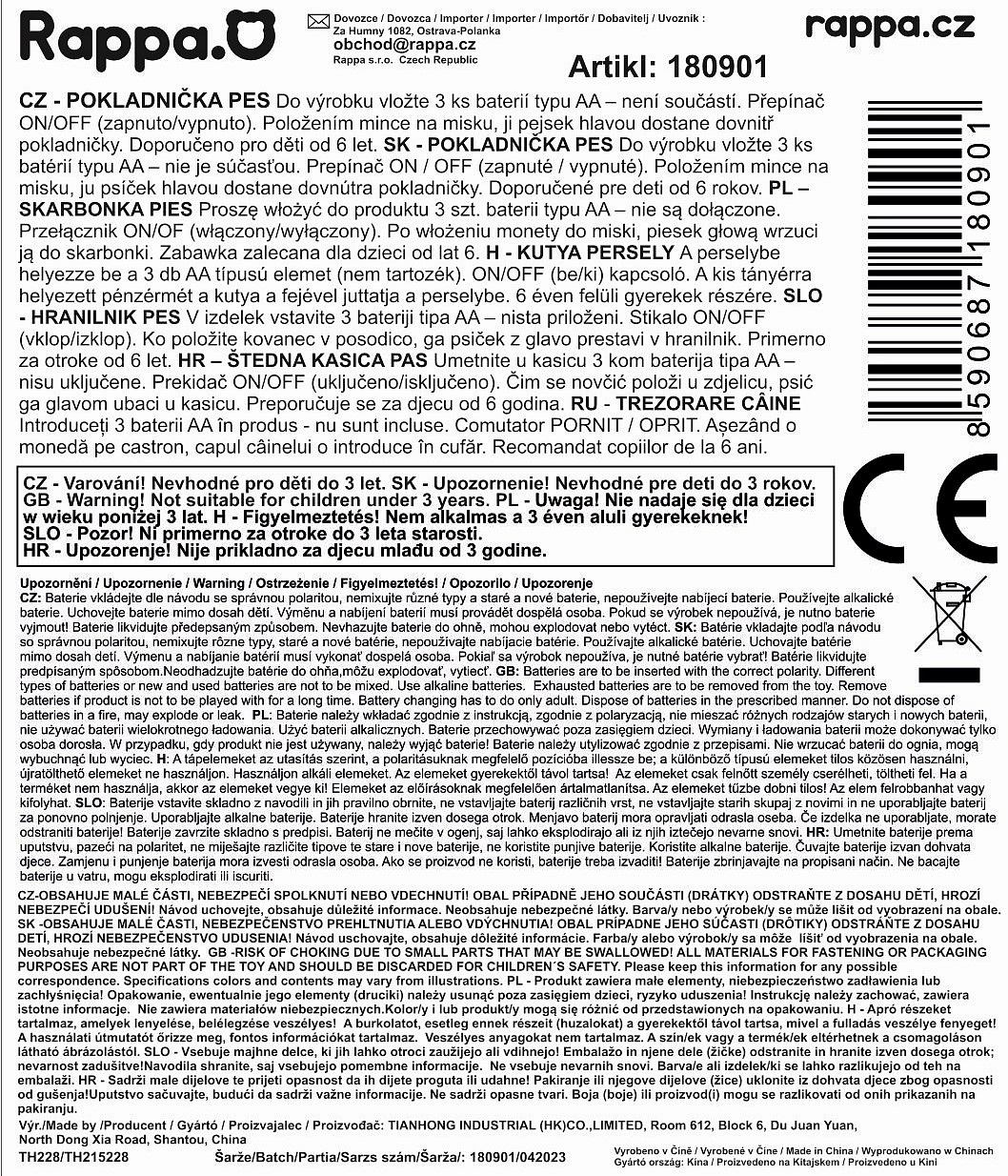 Položte minci na misku a pejsek ji dostane až dovnitř pokladničky. Perfektní dárek, který naučí děti šetřit a zároveň se u toho pobaví. Výrobek vyžaduje použití 2 ks baterií typu AA, které nejsou součástí.
