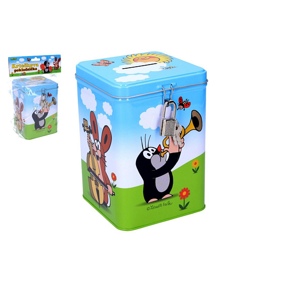 Pokladnička Krtek kvádr se zámkem plech 11x15cm v sáčku