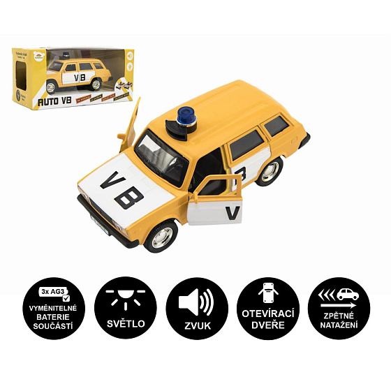 Policejní auto VB combi kov/plast 12cm na zpětné nat. na baterie se světlem, zvukem v krab. 15x7x7cm
