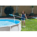 This set of accessories allows you to thoroughly clean any pool with a diameter of up to 549 cm. The main component is a telescopic pole with a maximum length of 279 cm. At the end, there is a special connector for attaching 3 different heads included in the set. These include a special brush for cleaning pool walls and bottom, a net for quickly removing floating debris, and a highly efficient pool floor vacuum.
