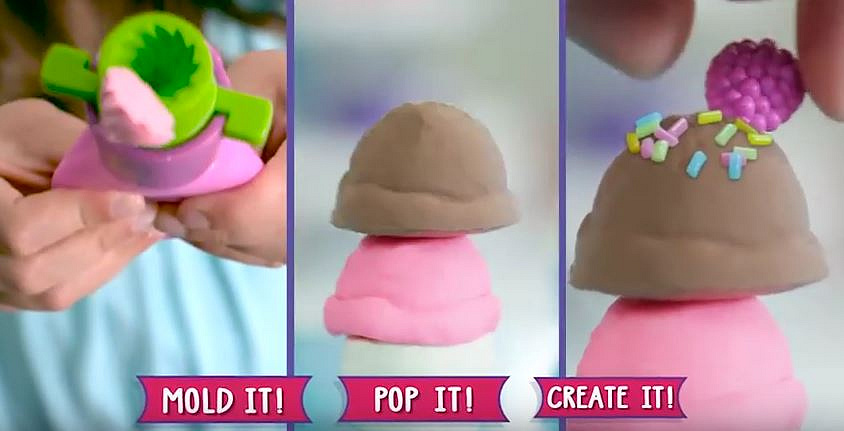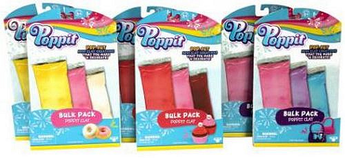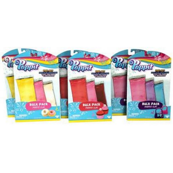 Modelína Poppit ve třech různých barvách.