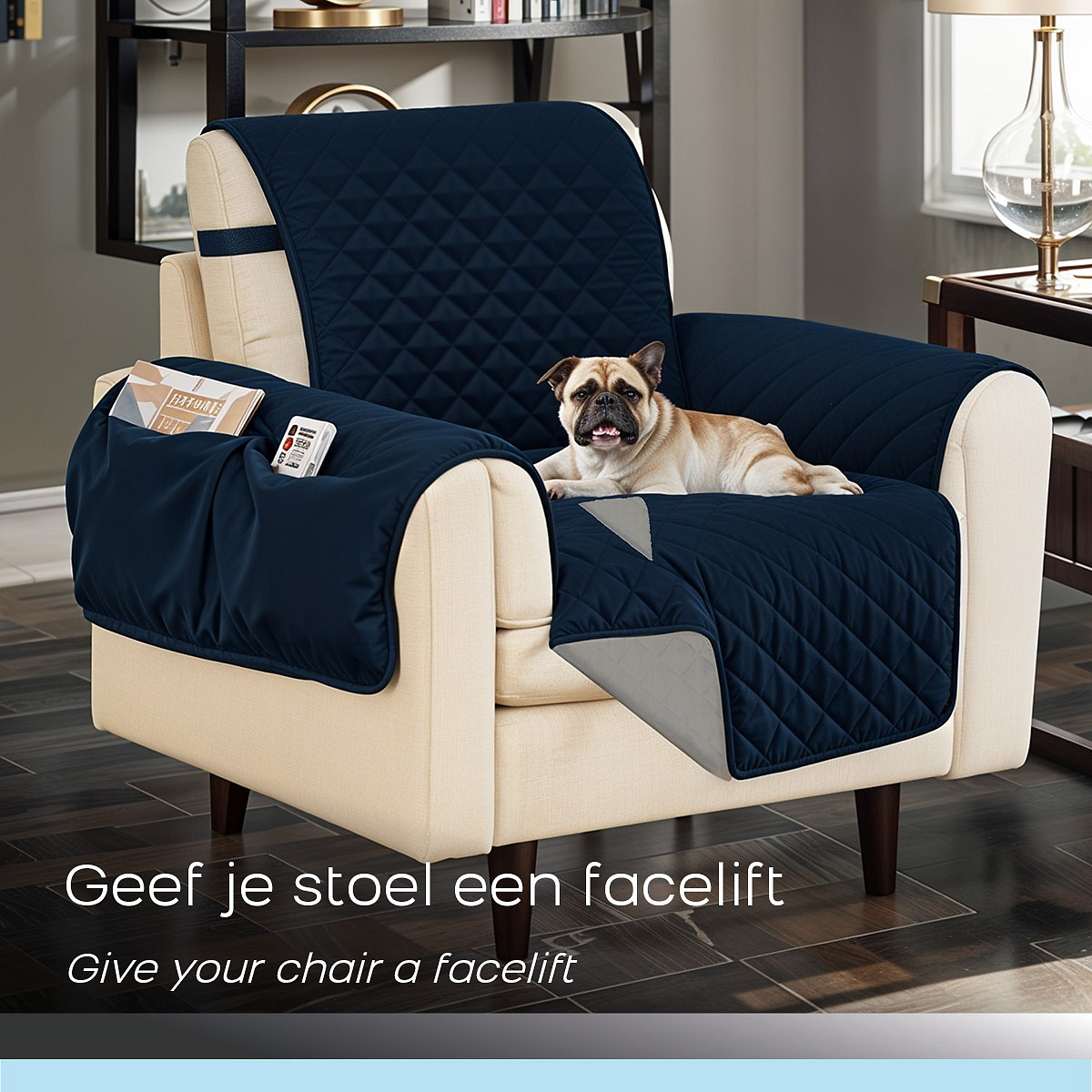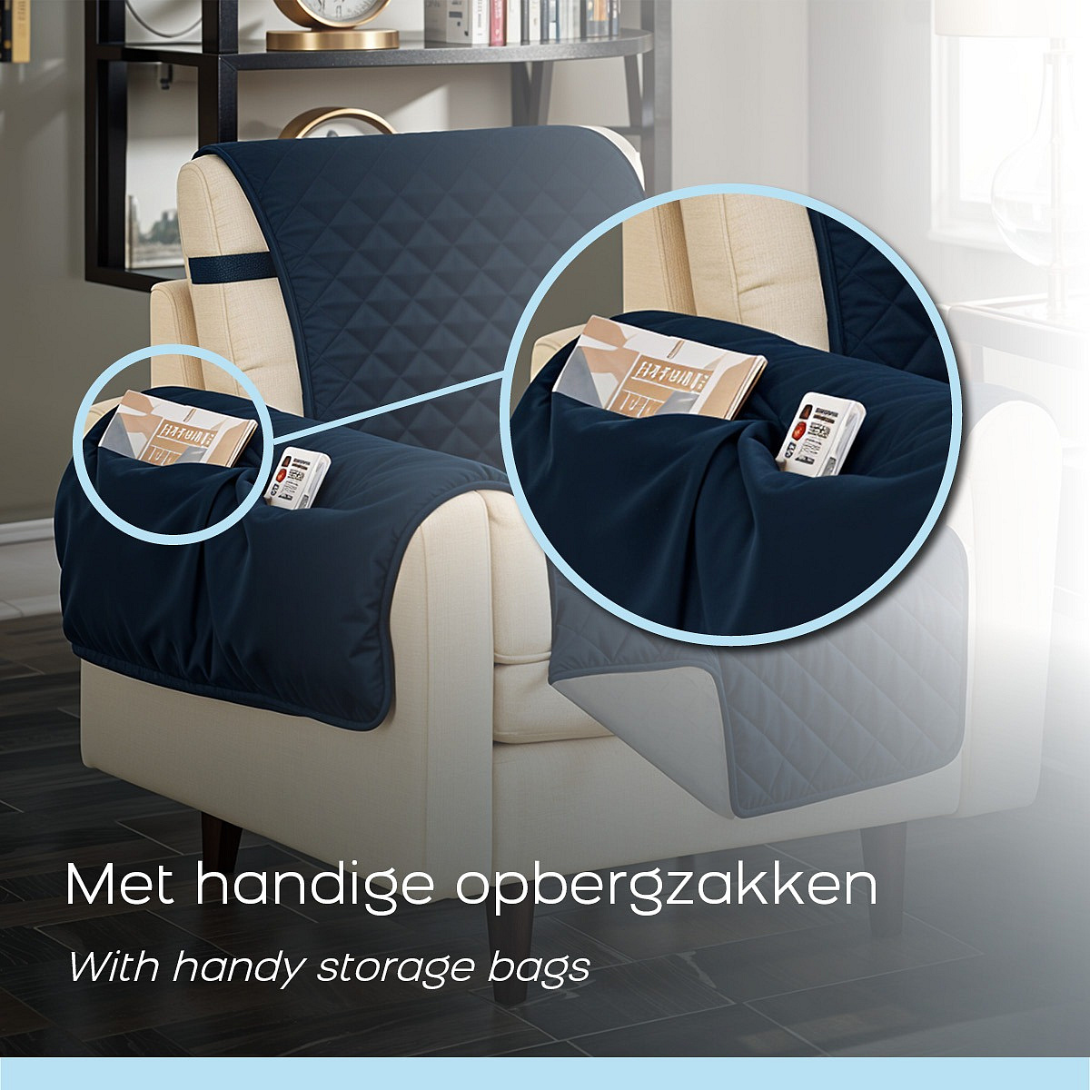 This Couch Cover fits almost any chair thanks to its wide back design and non-slip band that prevents slipping. The armrests are also protected and include handy pockets for remote controls, guides, and small items. Because the cover is reversible, you get two looks in one. Choose the color that suits your home best. It also works great as a pet blanket. In short, with this cover you keep your seat free from dirt and hair, no matter what