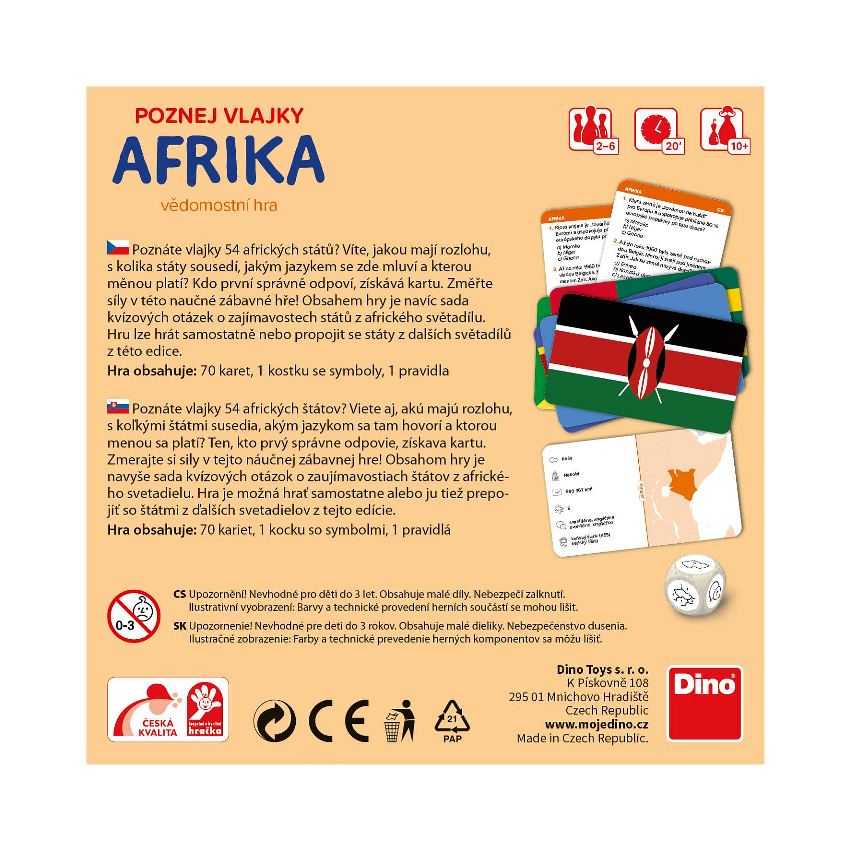 Poznej vlajky Afrika cestovní společenská hra v krabici 13x13cm