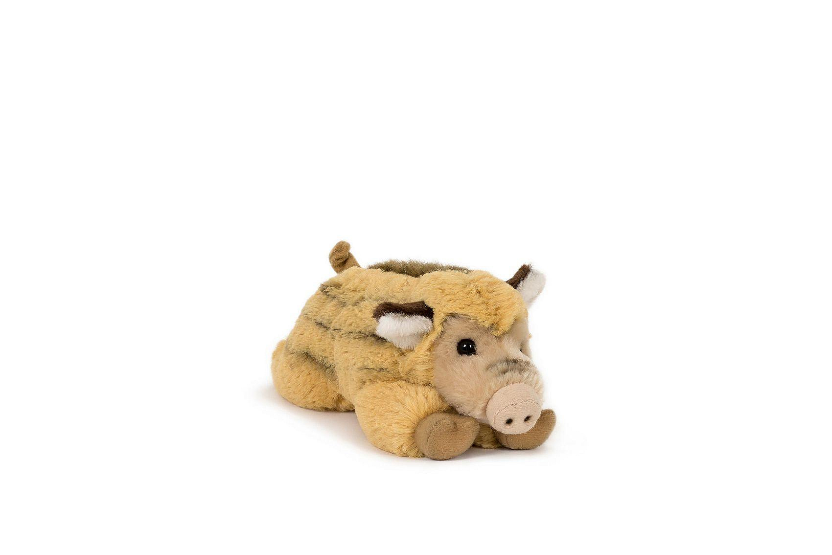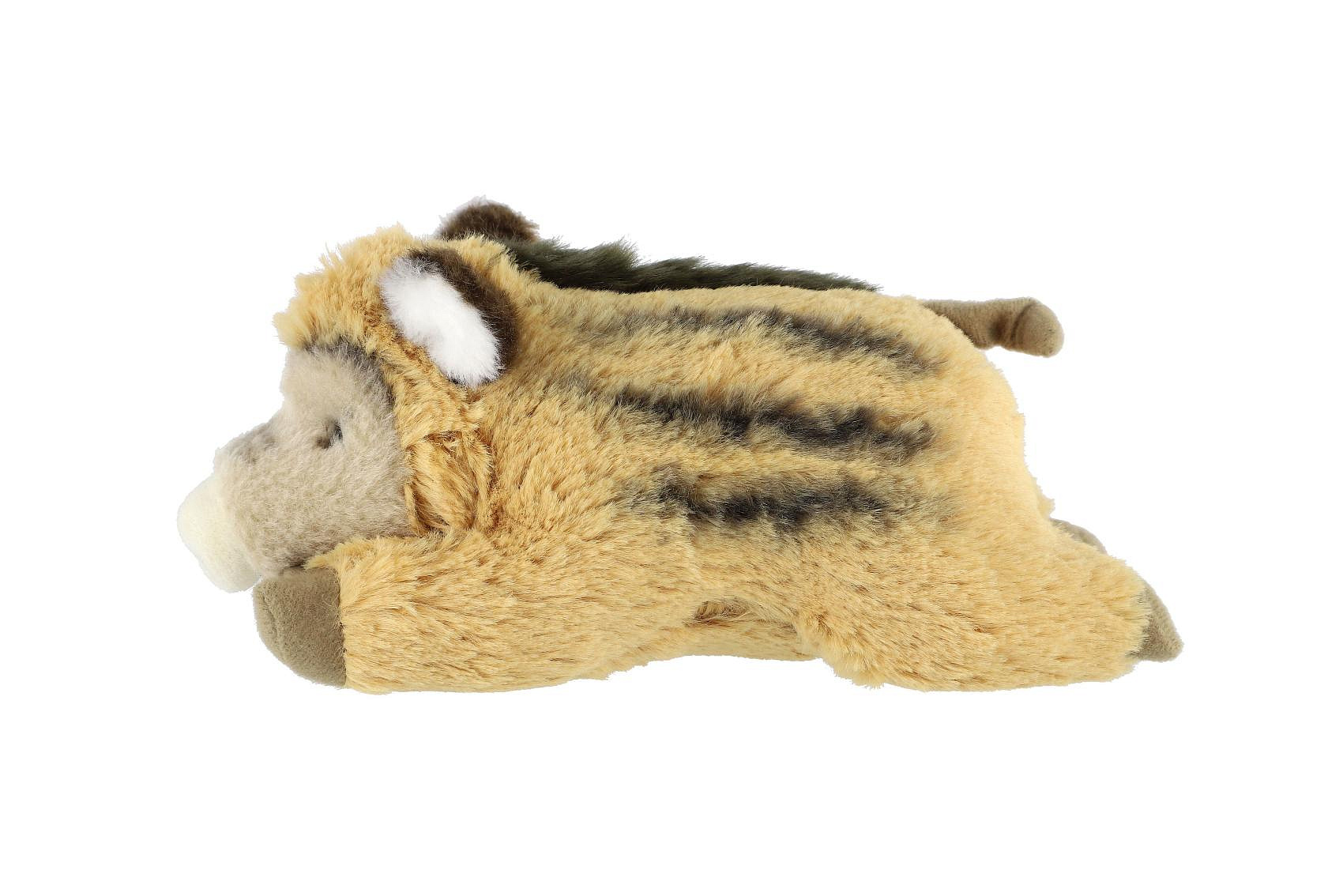 Roztomilé ležící sele divokého prasete potěší každého milovníka zvířátek. Heboučké, měkké a věrně zpracované s typickým pruhováním. Skvělé jako mazlivý kamarád pro nejmenší nebo jako doplněk k větším lesním zvířátkům. Velikost: 9 × 18 cm Vhodné pro děti od 0 měsíců
