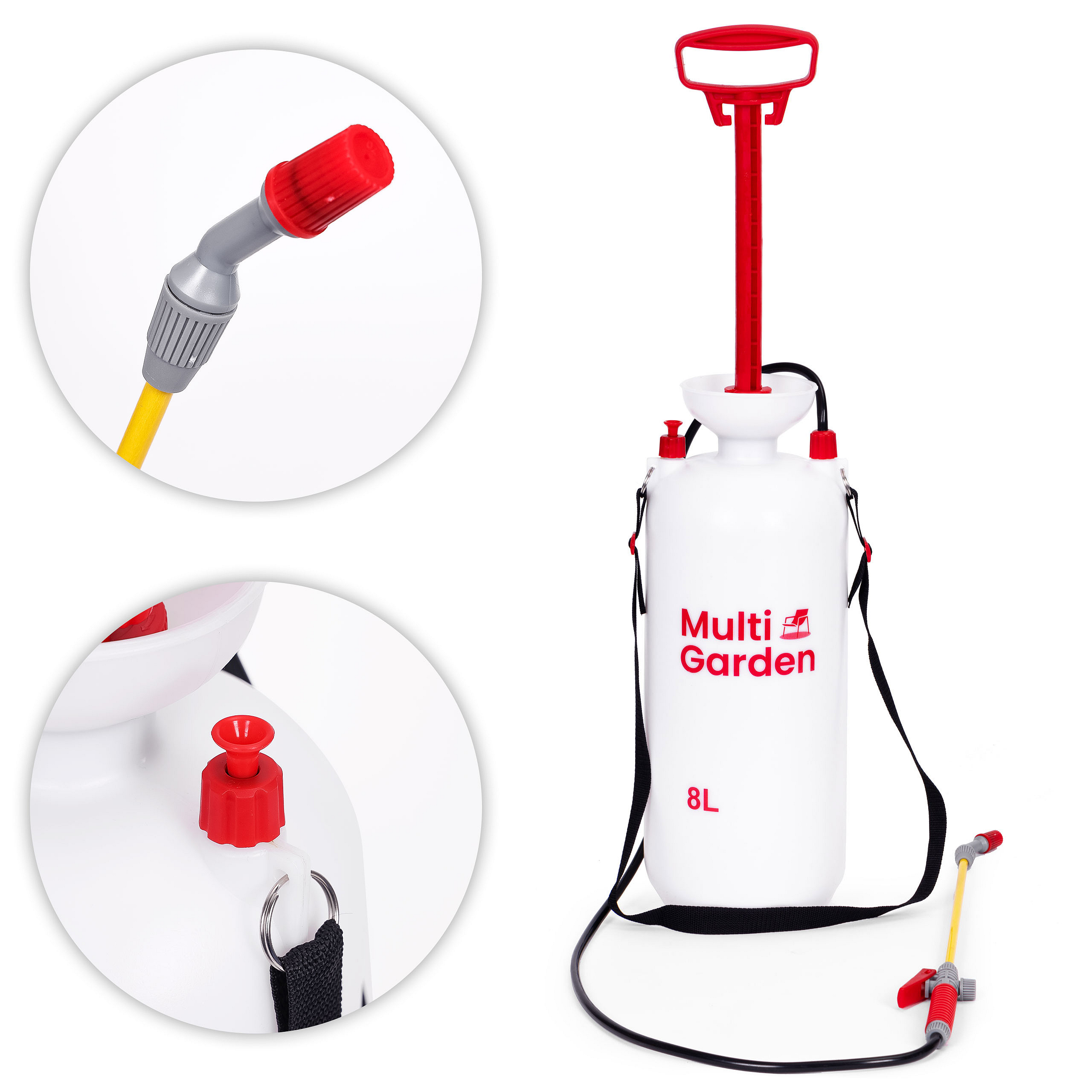 The pressure sprayer is an extremely versatile tool used for both garden care and everyday cleaning tasks. It is commonly used for spraying plant protection products such as pesticides, fungicides, and herbicides, helping to control diseases, pests, and weeds. It is also ideal for watering plants, especially delicate ones that require even and gentle hydration. Additionally, the sprayer can be used for cleaning surfaces, such as removing mold and dirt from patios, paving stones, or garden panels, making maintenance around the home much easier. With its adjustable nozzle, users can customize the spray pattern—from precise spot spraying to a wide-angle mist perfect for covering larger areas.