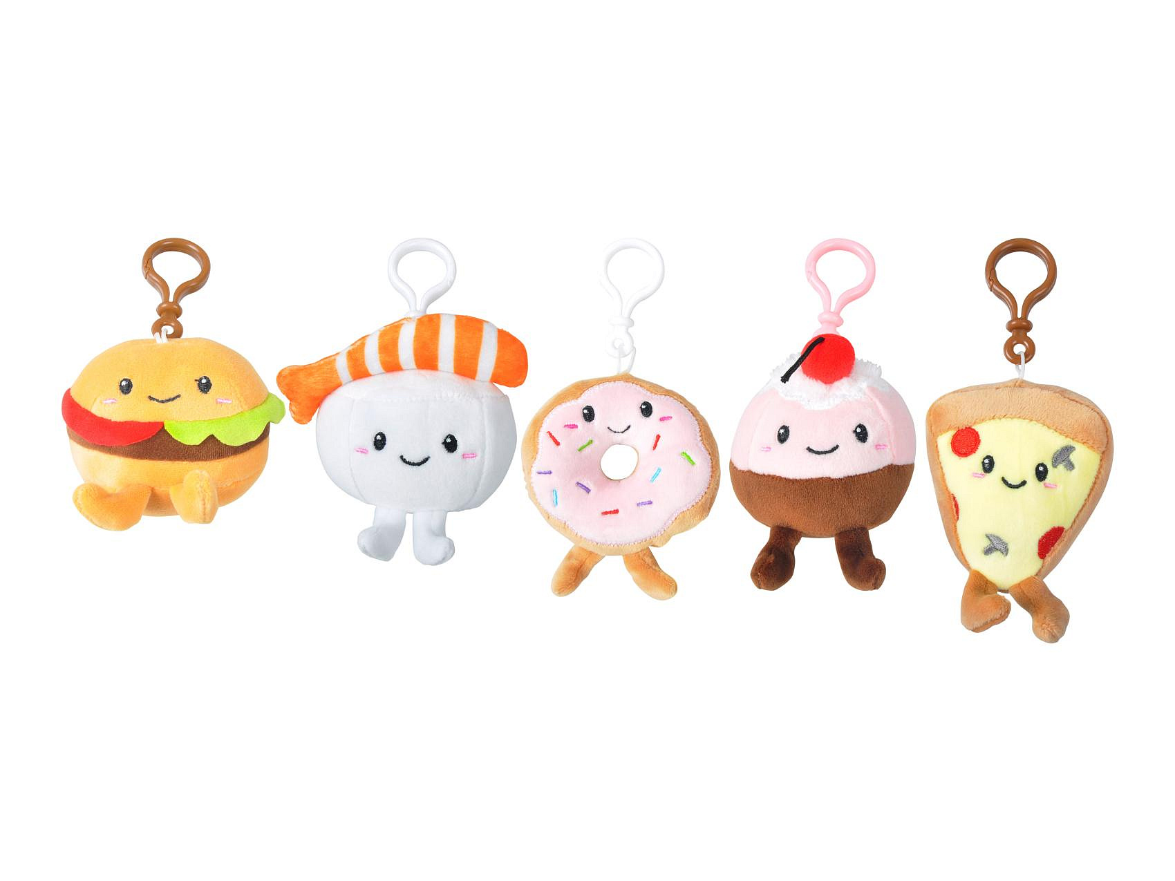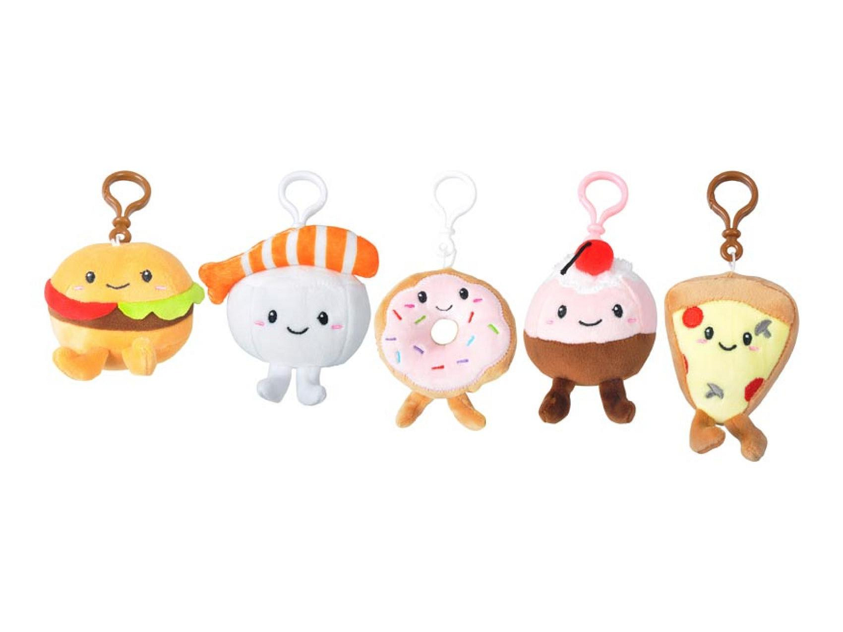 Seznamte se s nejroztomilejšími plyšovými přívěsky, které si zamilujete na první pohled! Tato veselá kolekce přináší oblíbené pochoutky – hamburger, sushi, donut, zmrzlinu a pizzu – všechny s rozesmátými obličejíky, které vám zaručeně zlepší náladu.Stačí jedno cvaknutí praktického klipu a vaše klíče, batoh, kabelka nebo penál získají novou dávku roztomilosti. Hebký plyšový materiál je tak příjemný na dotek, že nebudete chtít dát přívěsek z ruky. Ať už hledáte parťáka na cesty, nebo drobný dárek, který vykouzlí úsměv, tyhle přívěsky jsou jasná volba. Motiv: hamburger, sushi, donut, zmrzlina, pizza. Vhodné pro děti od 3 let.
