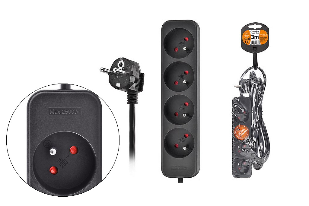 Černý prodlužovací kabel se zásuvkami Prodlužovací kabel má délku 3 metry a 4 zásuvky. Provedení v elegantní černé barvě, která se hodí do moderního interiéru. počet zásuvek: 4 průřez vodičů: 3 x 1mm2 typ kabelu: H05VV-F3 lomená vidlice barva: černá délka: 3m 230V/10AVíce