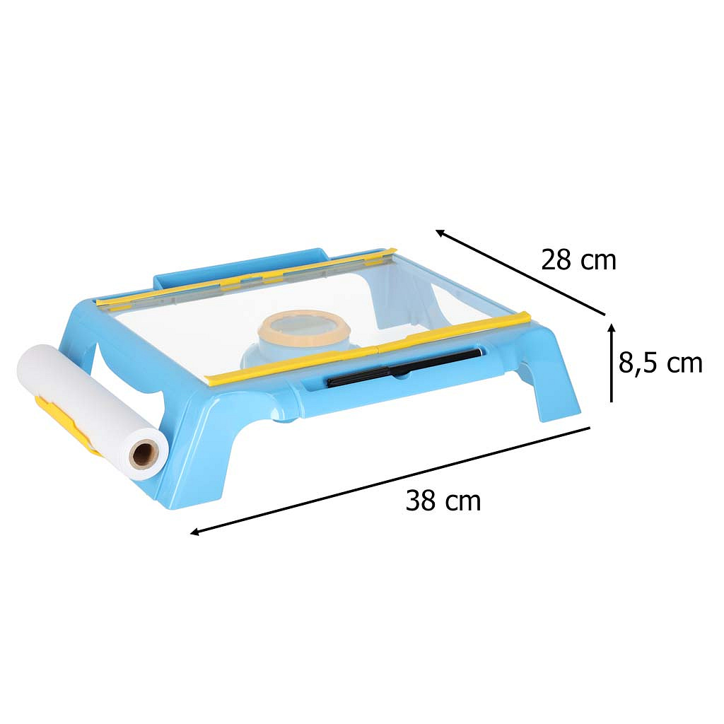 V sadě najdeš stabilní stolek na kreslení, navržený s ohledem na pohodlí a bezpečnost nejmenších. Stolek s projektorem je kombinací funkčnosti a zábavy - díky stolku může dítě tvořit, kdekoliv si přeje! Sada na kreslení s projektorem obsahuje vše, co je potřeba pro tvůrčí dobrodružství: role papíru na kreslení (vhodná pro formát A4), 12 barevných fixů a stejný počet pastelových tužek, sada 72 obrázků k malování v připravených šablonách, které pomáhají při učení. Zábava je jednoduchá - stačí vložit diapozitiv, nastavit projektor a můžete začít se zábavou!