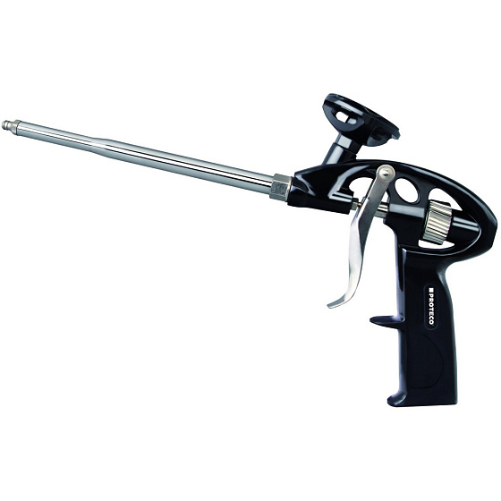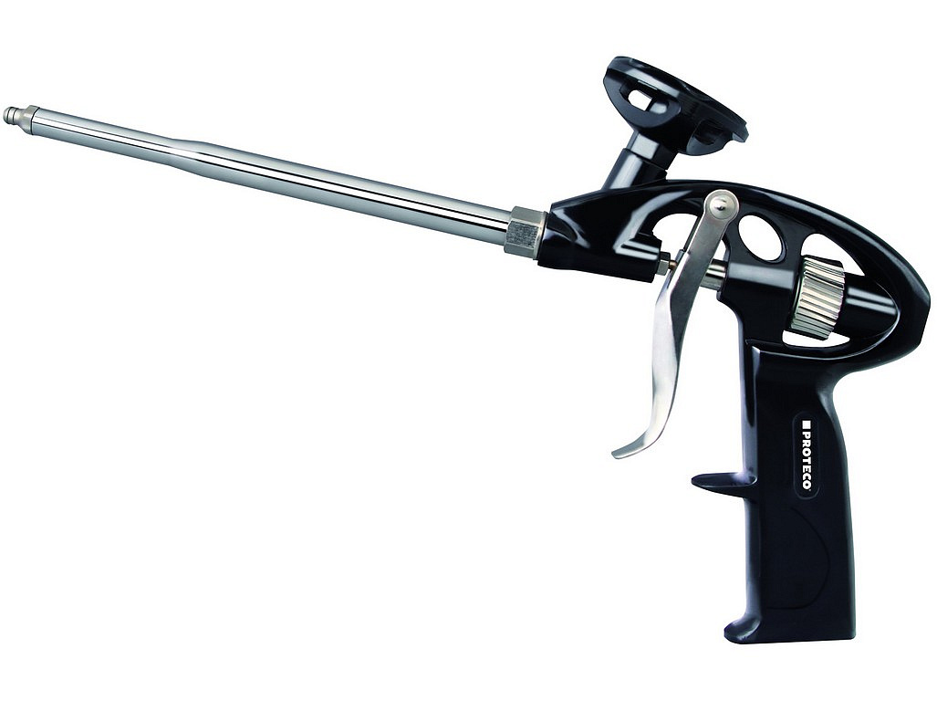 Pistole na PU pěnu celokovová s teflon. vnitřkem je pomocníkem pro profesionální aplikaci prakticky všech druhů nízko i vysoko expanzních polyuretanových pěn, které se staly dnes již nedílnou součástí moderního stavebnictví. Zásadní výhodou konstrukce této pistole je přesné dávkování pěny a velmi snadné čištění povrchu pistole díky nepřilnavému teflonovému povrchu. K pistoli jsou dodávány i prodlužovací nástavce na trysku. Výhody a charakteristické znaky - Celokovová s teflonovým vnitřkem - Pro aplikaci prakticky všech nízko i vysoko expanzních polyuretanových pěn - Snadné číštění - Přesné dávkování pěny