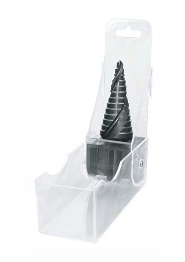 Stupňovitý vrták HSS TiAlN má spirálovou drážku a lamač třísek pro odjehlení vyvrtané díry. Stupňovitý vrták TiAlN je vyroben z kvalitní rychlořezné oceli a je povlakován titan-aluminum-nitridem, který zvyšuje tvrdost a odolnost povrchu. Systém upínání ProGrip odstraňuje možnost nežádoucího protočení upínací stopky ve sklíčidle. Pro zachování dlouhé životnosti stupňovitého vrtáku je důležité dodržovat řeznou rychlost podle jednotlivých průměrů stupňů vrtáku. Pro mazání je vhodné používat řezný olej ve spreji.