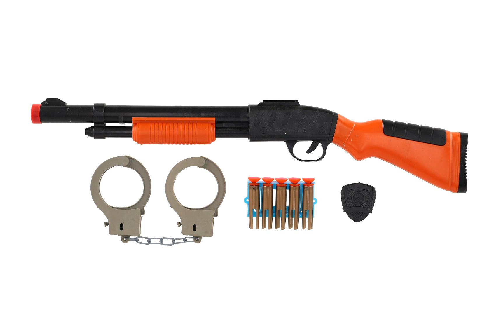 Zábava pro všechny chlapce, kteří touží stát se policistou! Balení obsahuje pistoli, 5 nábojů s přísavkou, pouta a policejní odznak. Vhodné od 3 let.