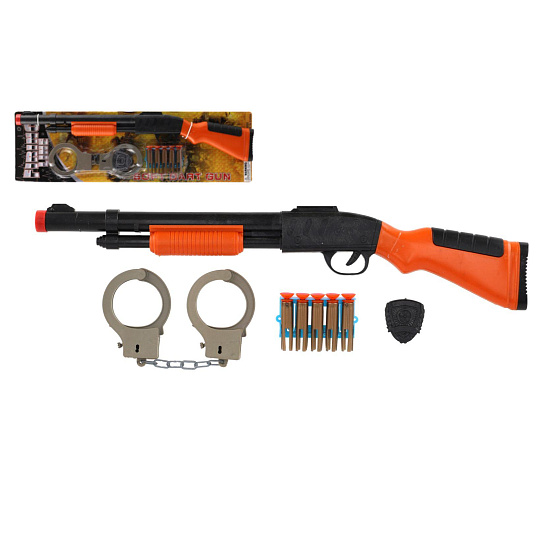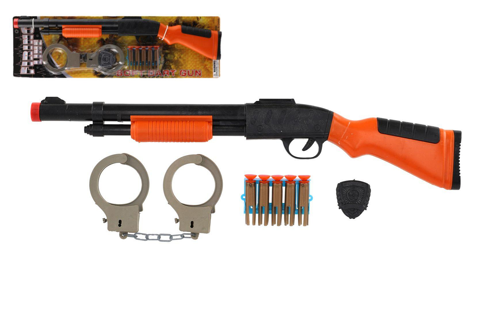 Puška/brokovnice +pouta+náboje na přísavky plast 50cm na kartě