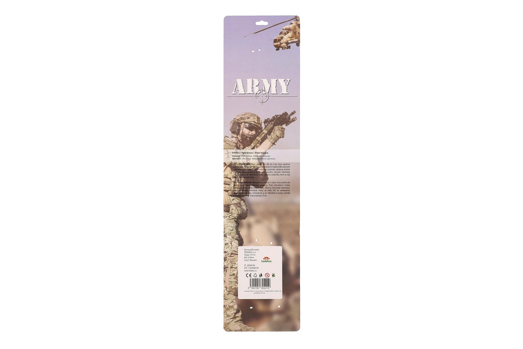 Čeká tě náročná mise! Máš za úkol ochránit tábor před nepřátelským vojskem! Vydej se na průzkum terénu a dohlédni na to, aby tábor byl v bezpečí! Parádní puška je s popruhem a žádný nepřítel proti tobě nemá šanci! Puška je velikosti 71 cm. Rozměry balení 18,5 x 76 x 5,5 cm. Vhodné pro děti od 3 let.