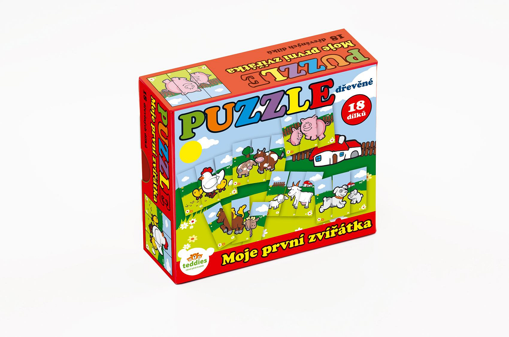 Puzzle Moje první zvířátka dřevěné 18 dílků pro nejmenší v krabičce 13x11,5x4,5cm 12m+ MPZ