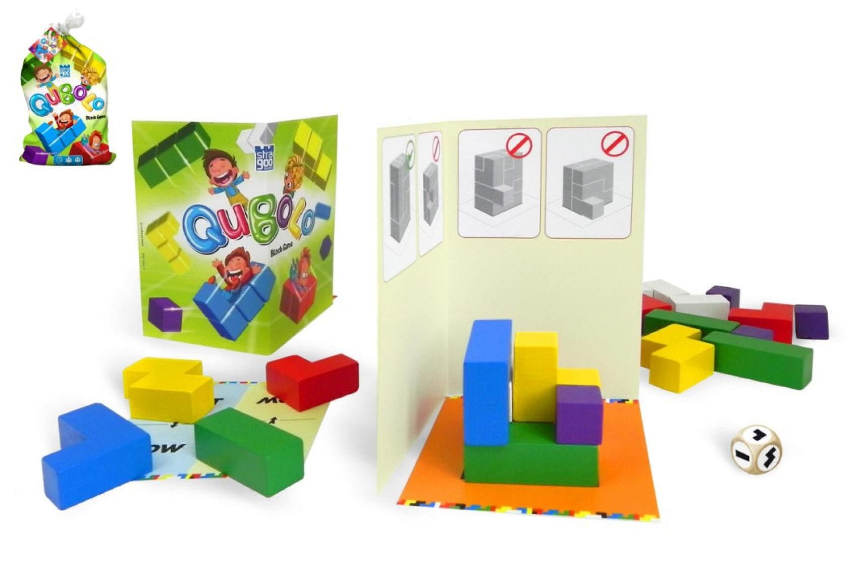 Qubolo společenská hra s dřevěnými kostkami v látkovém pytlíčku 27x15cm STRAGOO