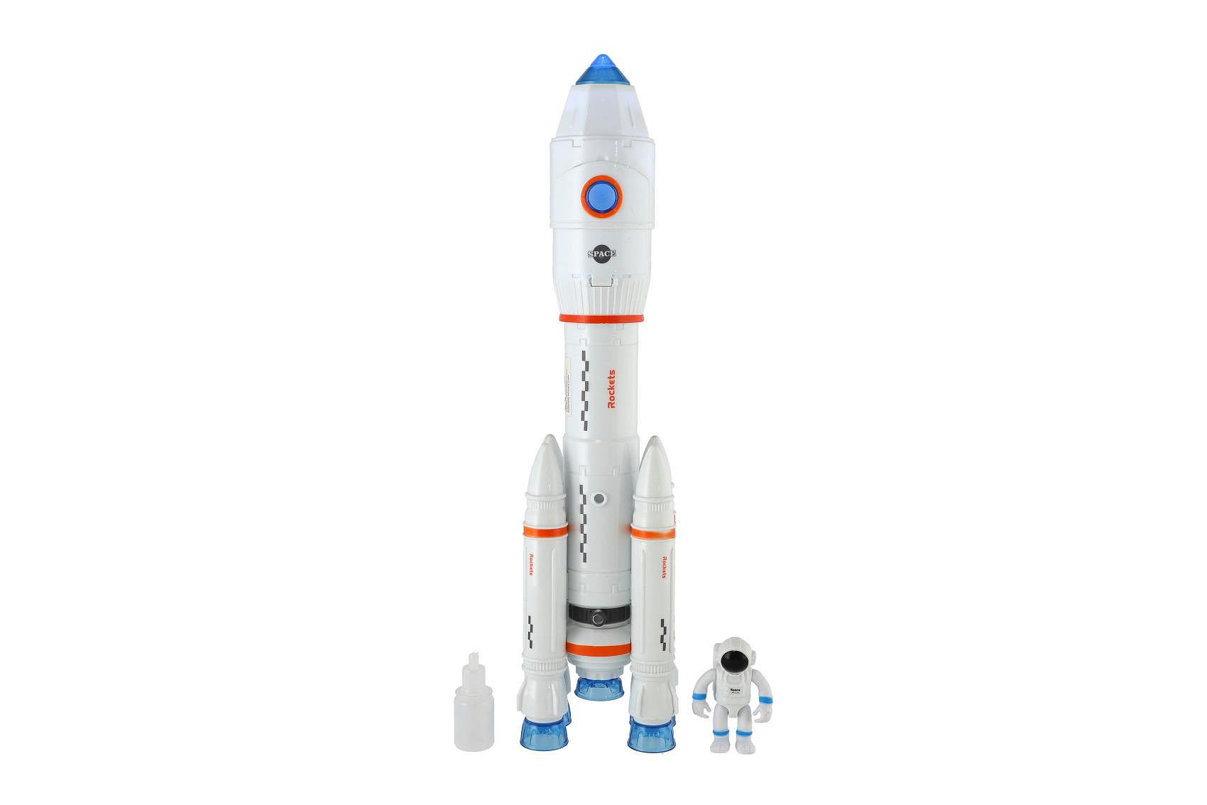 Raketa vypouštějící páru plast 36cm na baterie se zvukem se světlem s doplňky v krabici 17x38x6,5cm