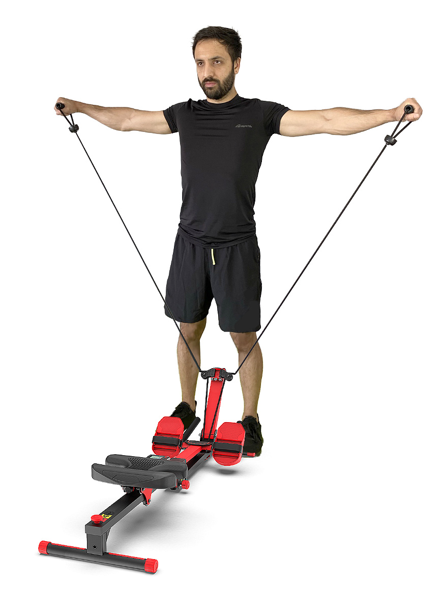 The rowing machine is equipped with hydraulic resistance, allowing you to adjust the intensity of your training as desired. With 12 different resistance settings you can tailor your workout to your fitness level and personal goals, whether you want a gentle session or an intense interval training.