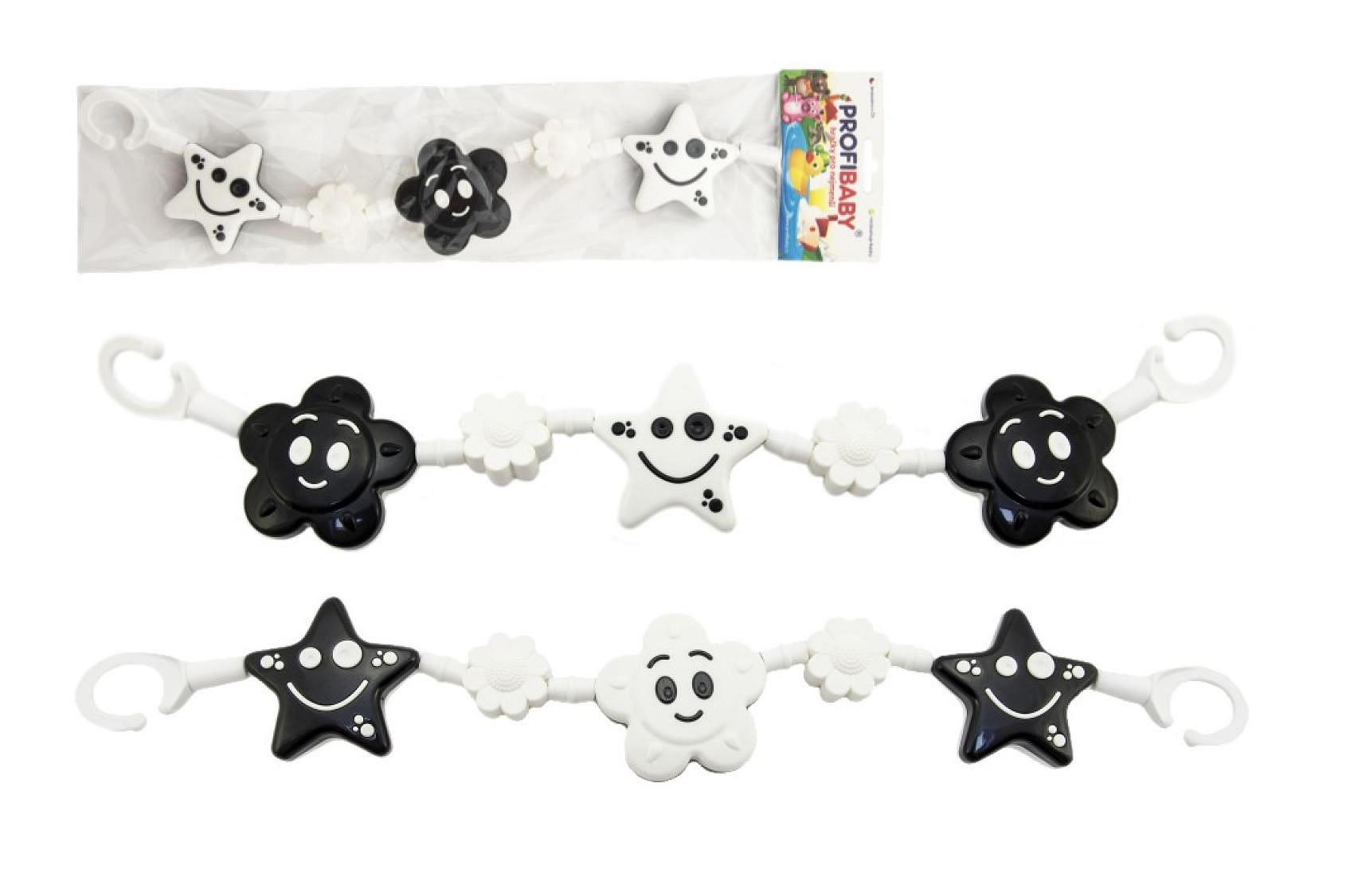 Řetěz/zábrana kytička,hvězdička kontrastní plast 45cm černobílá v sáčku 0+