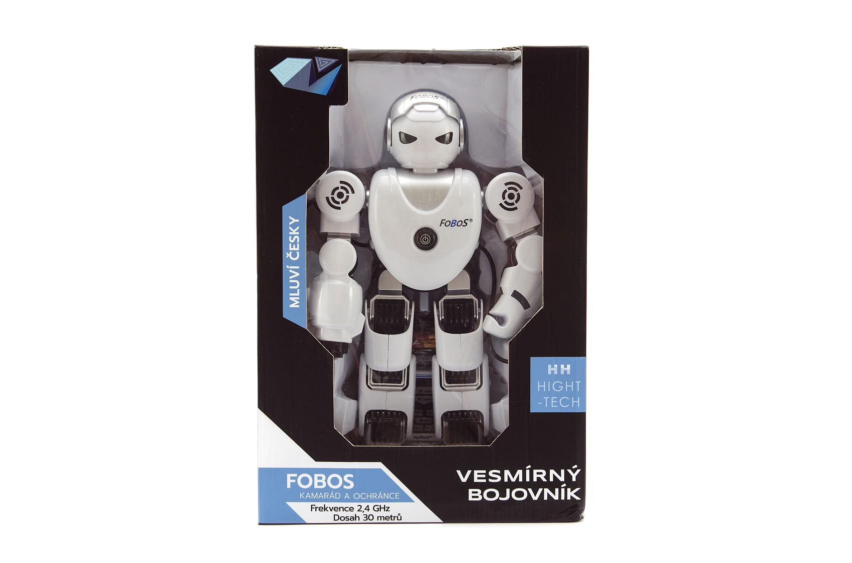 Robot RC FOBOS plast interaktivní chodící 40cm česky mluvící na baterie s USB v krabici 31x45x13cm