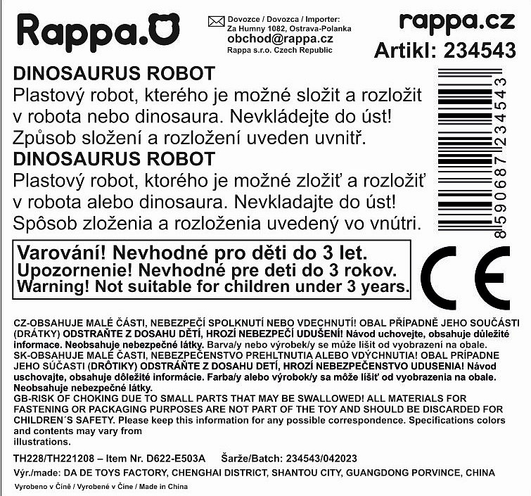 Moderní plastový robot, kterého můžeš jednoduše složit a rozložit v robota nebo dinosaura. Tak co, u