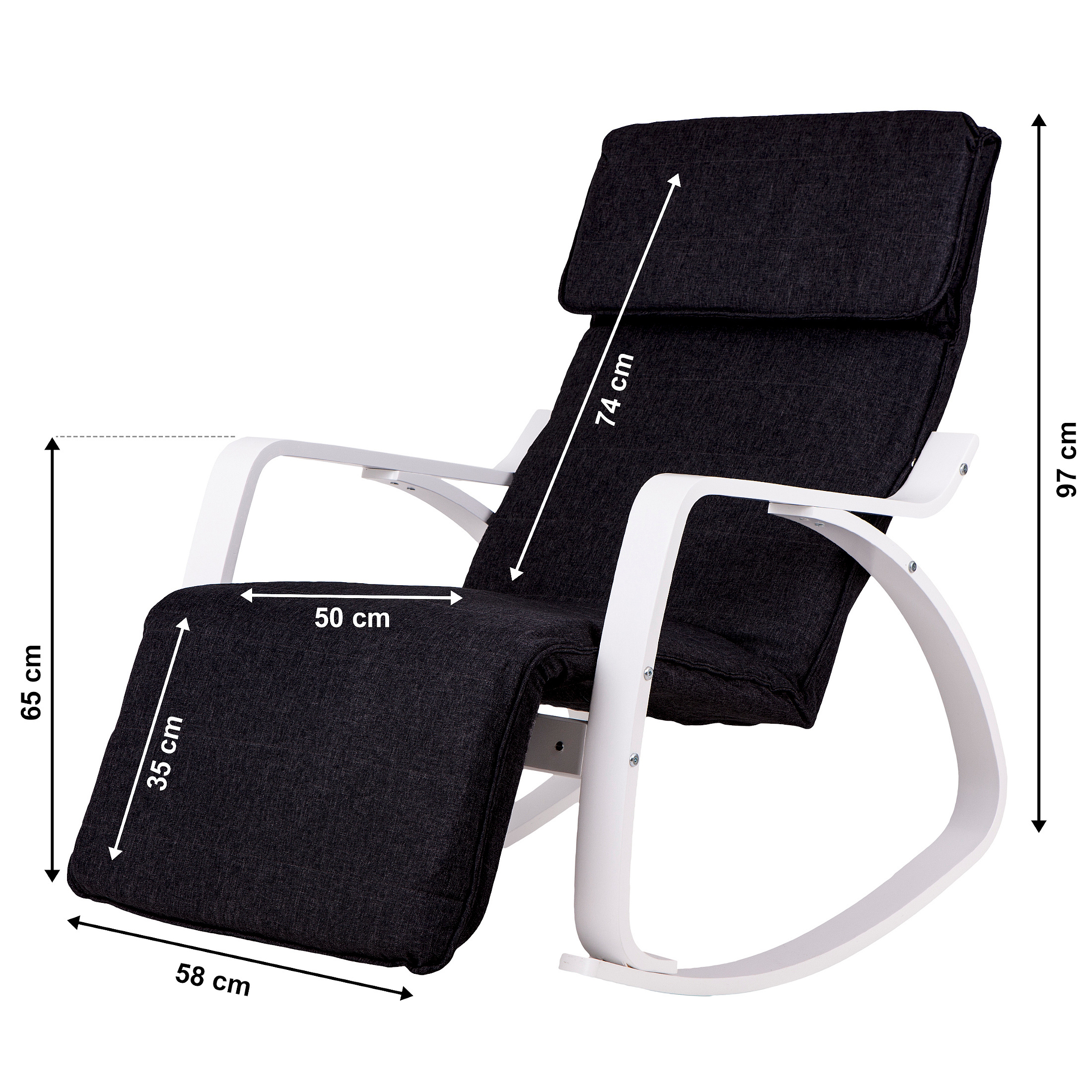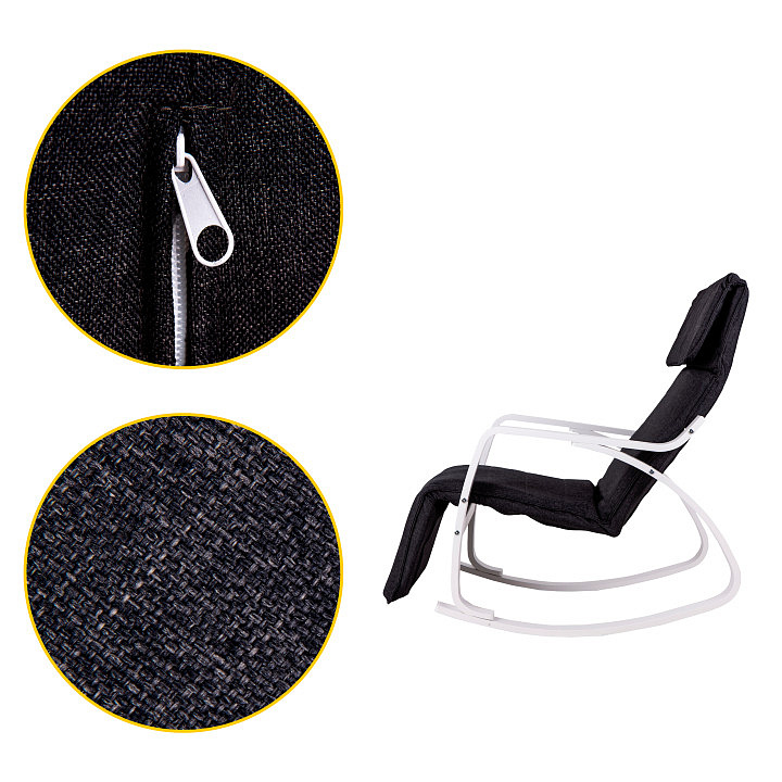The ModernHome rocking chair will allow you to relax, the possibility of gentle rocking will soothe your nerves, and the comfortable backrest will support your tired spine, and the double headrest will allow you to rest and relax your neck muscles.