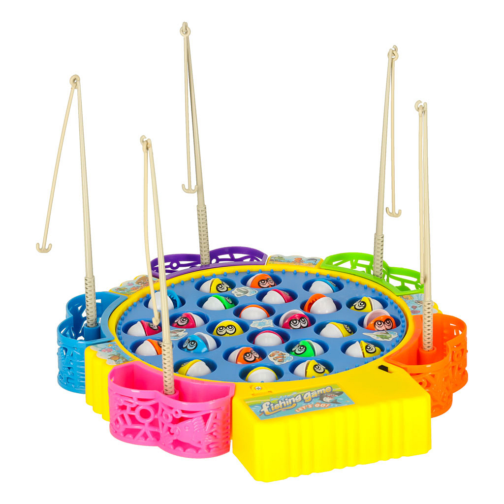 Wygrywa ten, kto schwyta wędką jak najwięcej rybek, które pływają - kręcą się po całej platformie.