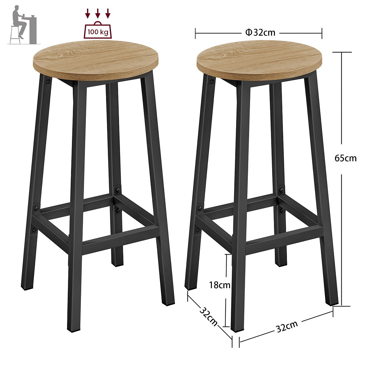 The stool’s steel frame ensures long-term stability and durability. Its solid construction easily supports heavier loads (up to 100 kg) while maintaining a light, modern appearance. An added benefit: the non-slip feet protect your floor from scratches and prevent the stool from sliding unintentionally.