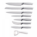 Royalty Line RL-WHT7-W: Sada 7 nožů s nepřilnavým povrchem a loupačem - bílá barva