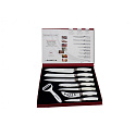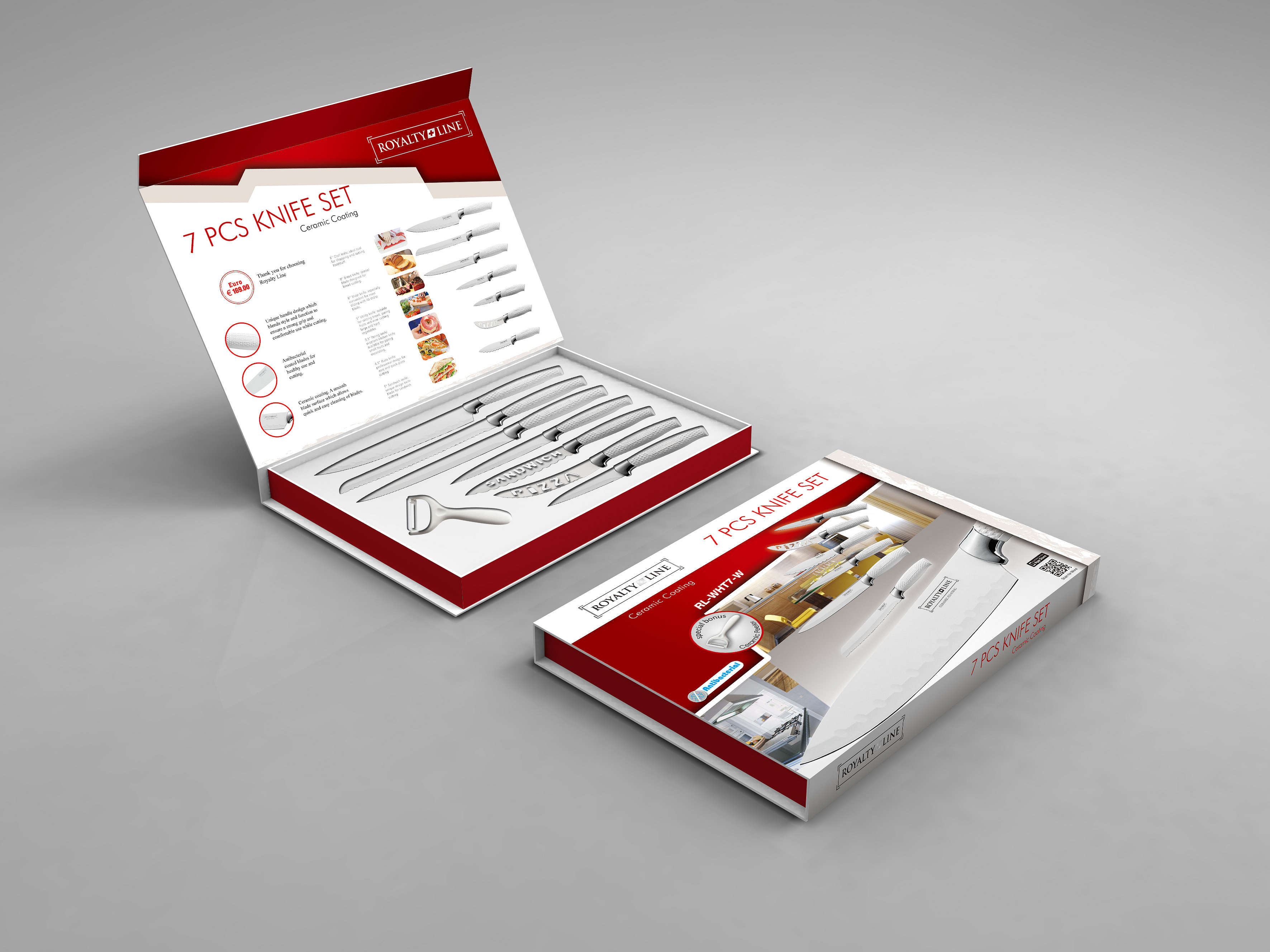 Sada Royalty Line RL-WHT7-W obsahuje kompletní sadu sedmi nožů, včetně nože na maso, kuchařského nože, nože na chléb, dvou univerzálních nožů, nože na pizzu, nože na sýr a loupačky. Tato ucelená kolekce vás vybaví dokonalým nožem pro každý úkol krájení a porcování v kuchyni.