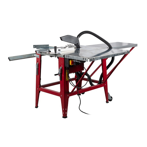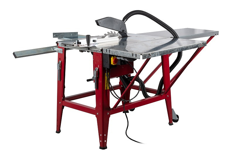 RPKS-315/400 SET se skládá z kotoučové pily na dřevo Roxta RPKS-315/400 + pojízdný stolek + boční stůl s podpěrami.
