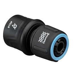 Vnitřní STOP mechanismus přeruší průtok vody rychlospojkou při výměně zavlažovacích pistolí, týčí, zavlažovačů a dalších připojených hadic, aniž je nutné zastavit přívod vody