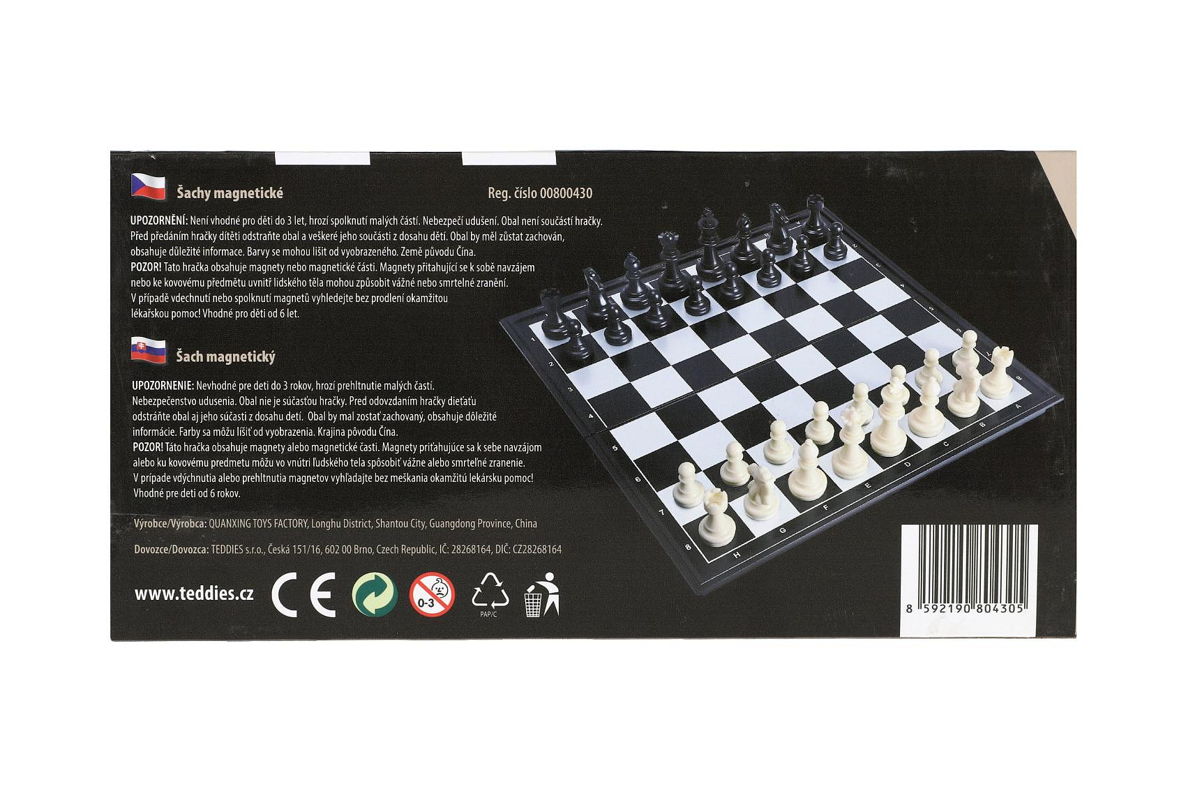 Klasická hra šachy v praktickém magnetickém provedení pro ještě větší komfort a přehlednost! Díky magnetickým figurkám zůstává hra stabilní i během cestování. Ideální pro děti i dospělé, začátečníky i pokročilé hráče. Elegantní černobílý design a pevné balení dělají z této sady skvělý dárek i výbavu na cesty. Vhodné pro děti od 6 let.