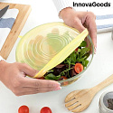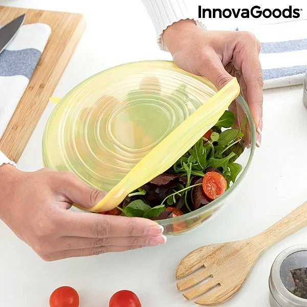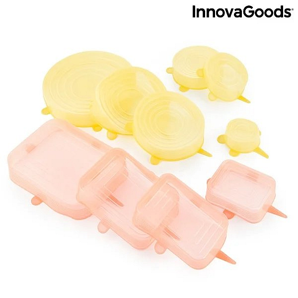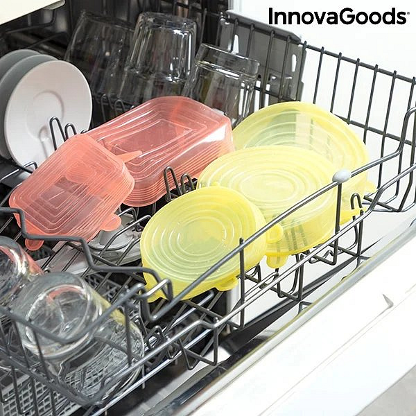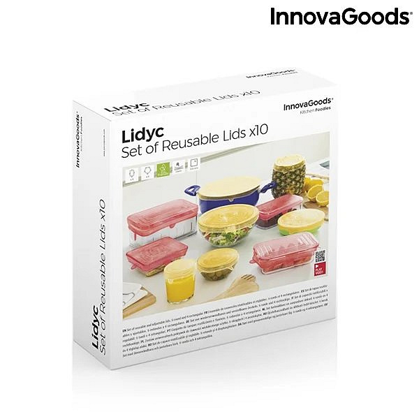 Sada 10 nastavitelných silikonových víček k utěsnění a hermetickému uzavření mnoha nádob a k optimálnímu uchování potravin a jejich dlouhodobému udržování v dobrém stavu. Pružná a flexibilní víčka různých tvarů a velikostí (6 kulatých a 4 obdélníková), která se snadno přizpůsobí nesčetným nádobám, jako jsou dózy, misky, sklenice, hrnce, plechovky, talíře, mísy atd. Kromě toho mají na okrajích jazýčky, které usnadňují jejich otevírání a zavírání, takže vzduch uvnitř nádoby je snížen na maximum. Jsou také vhodná pro konzervaci tekutin a pro přímé umístění potravin, jako je rozdělené ovoce nebo zelenina atd. Tato víčka k opakovanému použití, bez plastů nebo bez toxických látek přispívají k ochraně a respektování a péči o životní prostředí, protože nahrazují hliníkovou fólii nebo průhlednou fólii a zabraňují plýtvání či vyhazování zbytků potravin, které se dají použít v jinou dobu. Jejich průsvitný design umožňuje prohlížení obsahu. Jsou silná, odolná a nepropustná, zcela odolná proti polití a nekapající. Jsou vhodná do myčky a mikrovlnné trouby, chladničky a mrazáku.Více