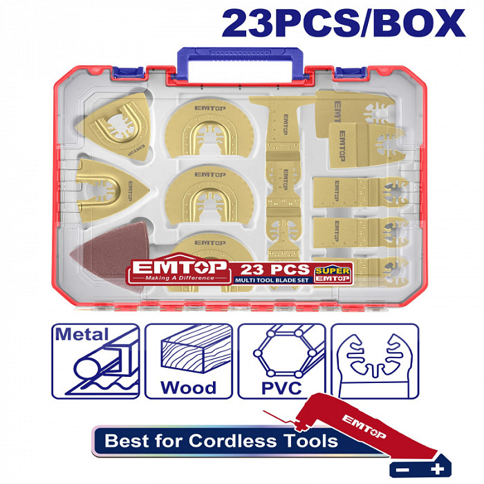 Sada 23 čepelí pro multifunkční oscilační brusku v plastovém boxu