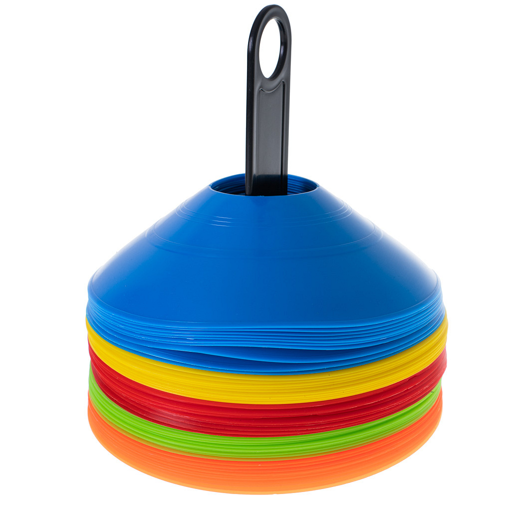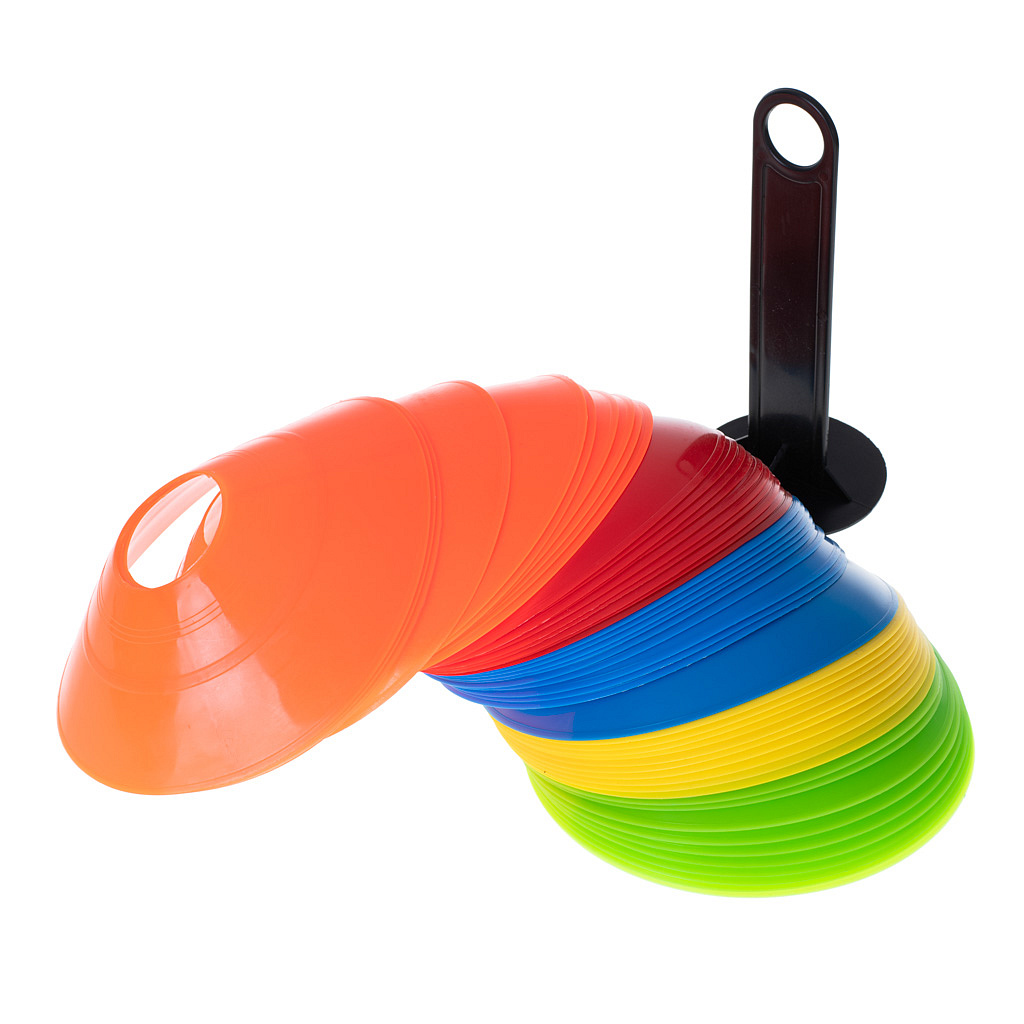 Zestaw aż 50 sztuk pachołków w 5 kolorach urozmaici wszelkie gry i zabawy ruchowe, ale również doskonale sprawdzi się podczas wszelkich treningów sportowych.