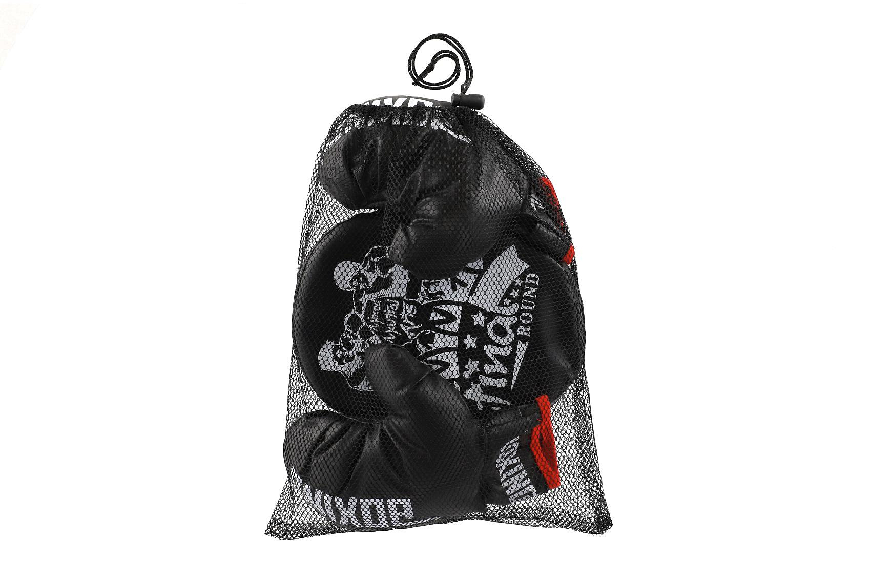 Dětská boxovací sada v síťce. Veďte své děti ke sportu. Jednoduchý nástroj jak zabavit unuděné děti, nebo vybít jejich energii. Určitě zažijete i spousty zábavy. Rozměry výrobku 22 x 33 x 14 cm. Vhodné pro děti od 3 let.