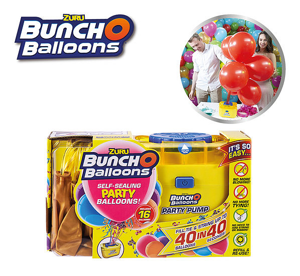 With the Bunch O Balloons Kit you never have to blow, tie and tie the balloons yourself again with a ribbon or rope. The balloons do that all by themselves. Just put them in the electric pump, turn on the pump and in no time you have perfectly filled balloons that can be used right away.