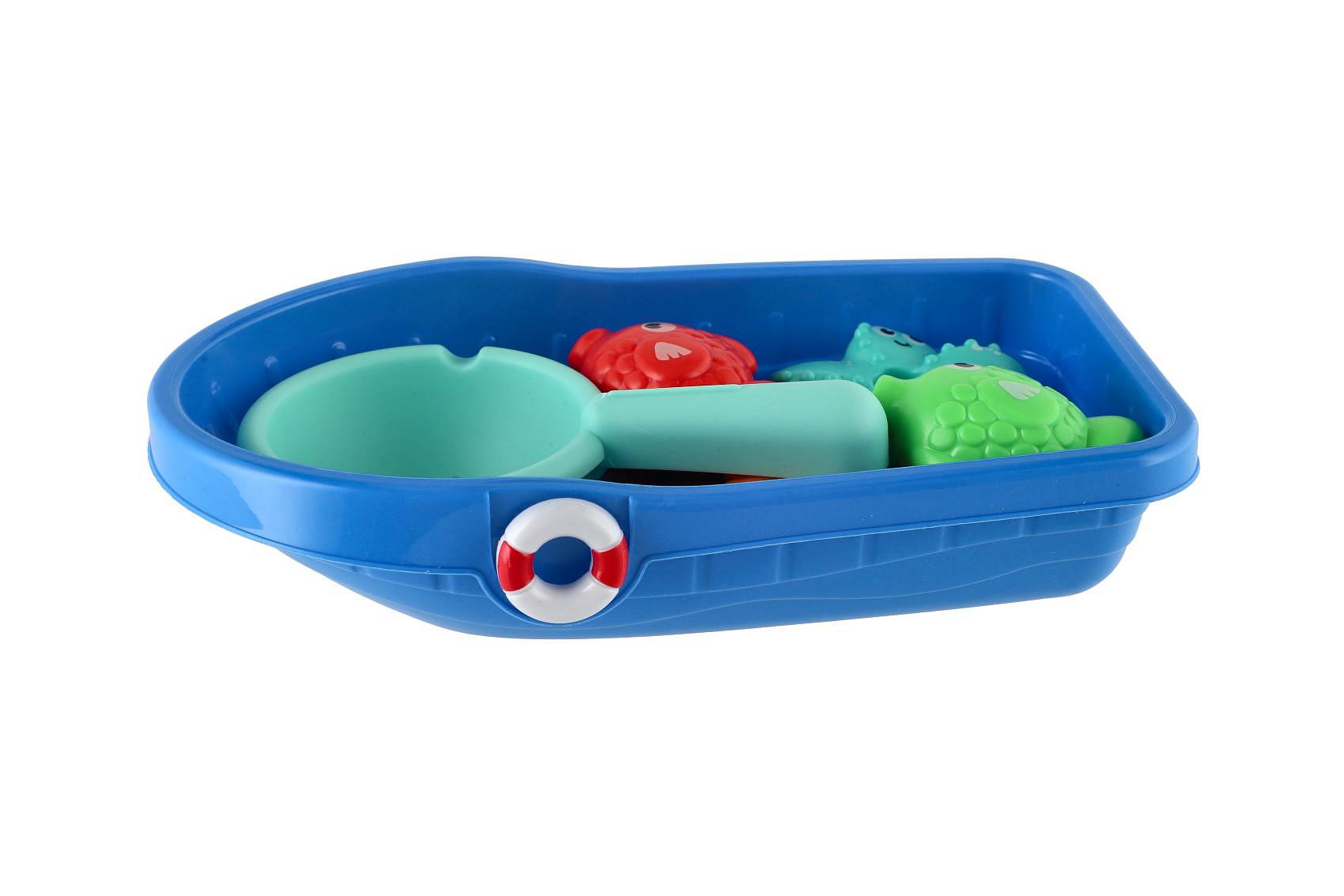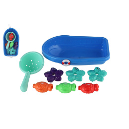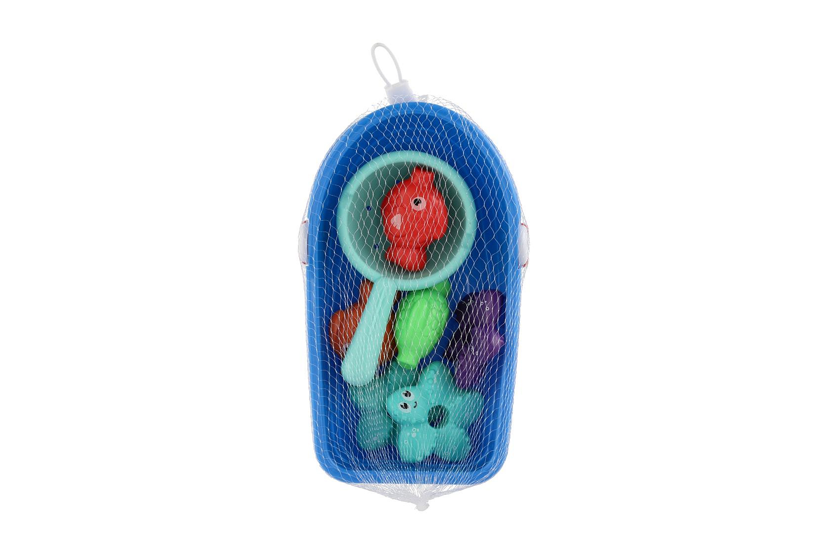 Popis Sada do vany plast lodička, sítko s mořskými zvířátky v síťce 14x24cm