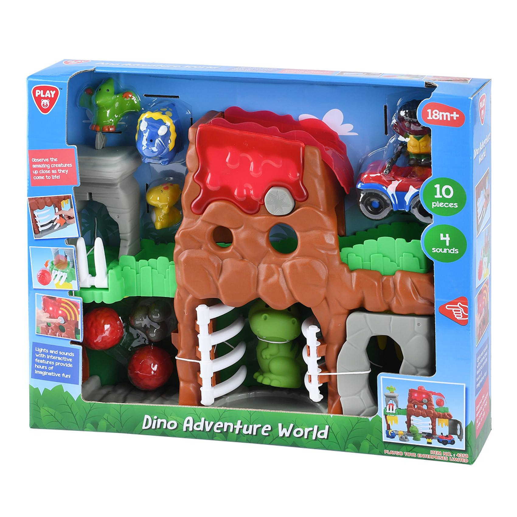 Sada dobrodružný svět dinosaurů s doplňky plast na baterie se zvukem, světlem v krabici 48x39cm 18m+
