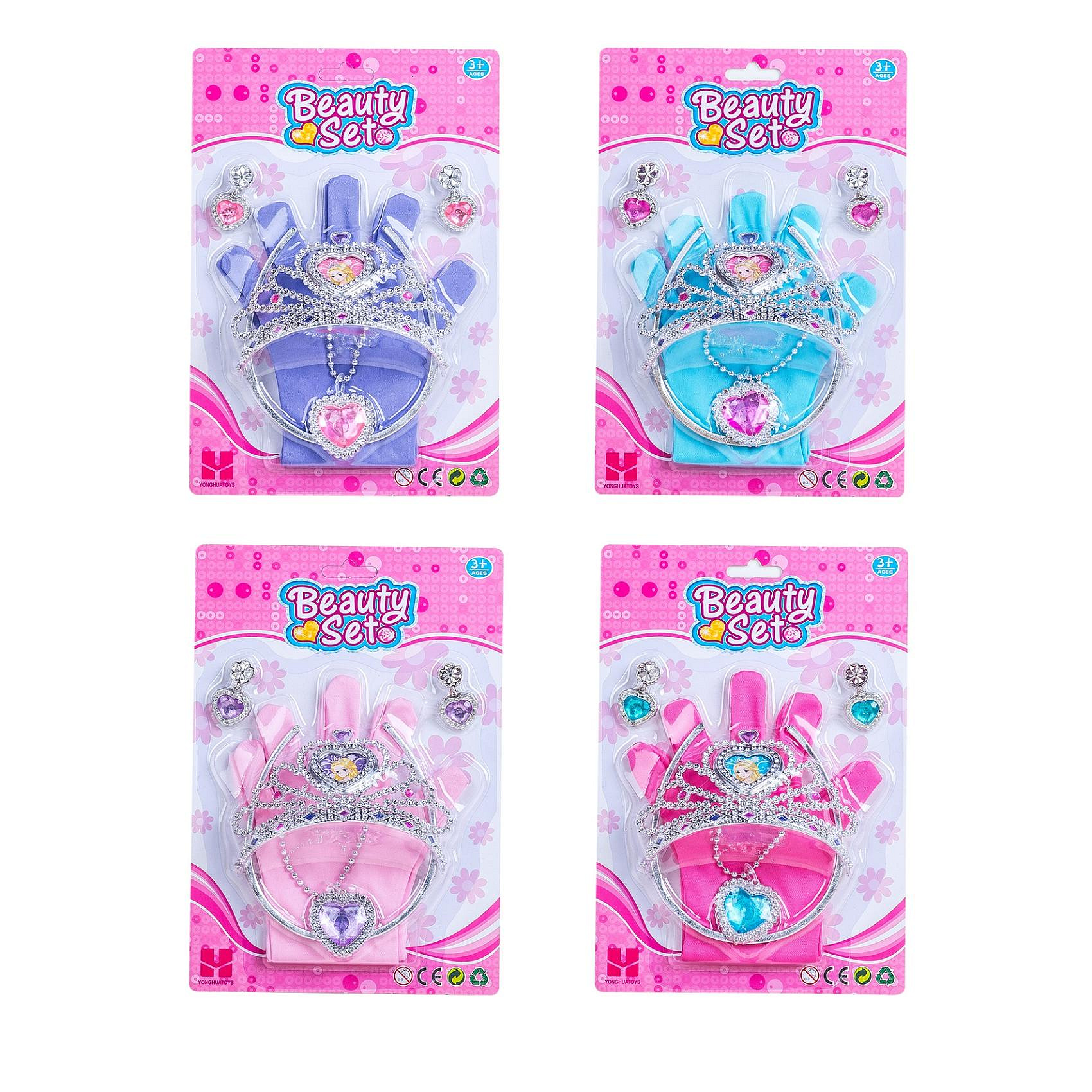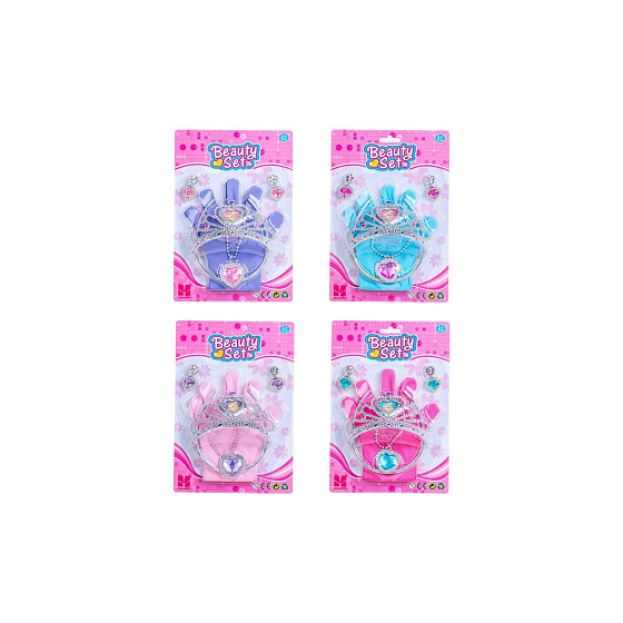 Sada krásy plast korunka, náhrdelník, naušnice, rukavičky 3 barvy na kartě 17,5x27,5cm