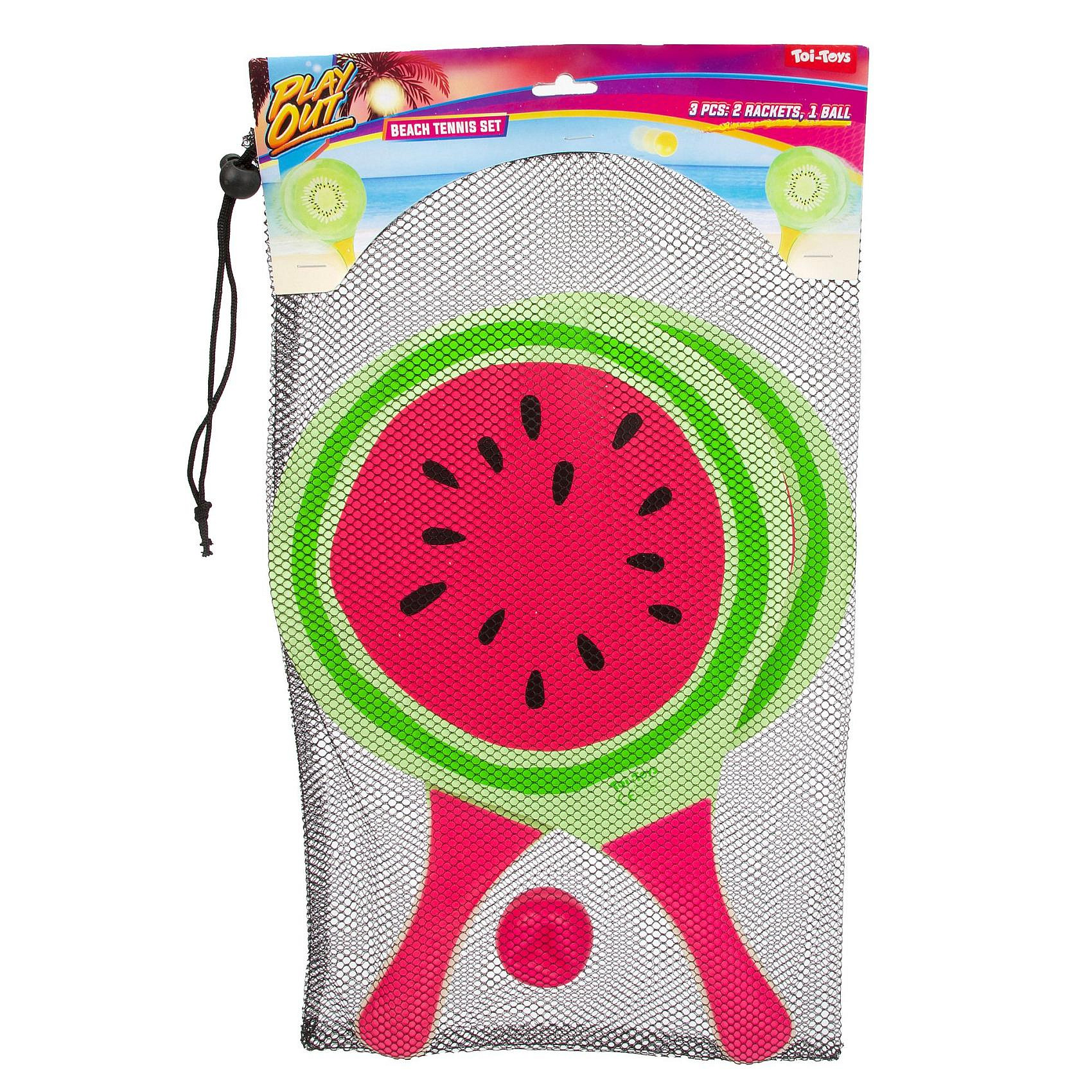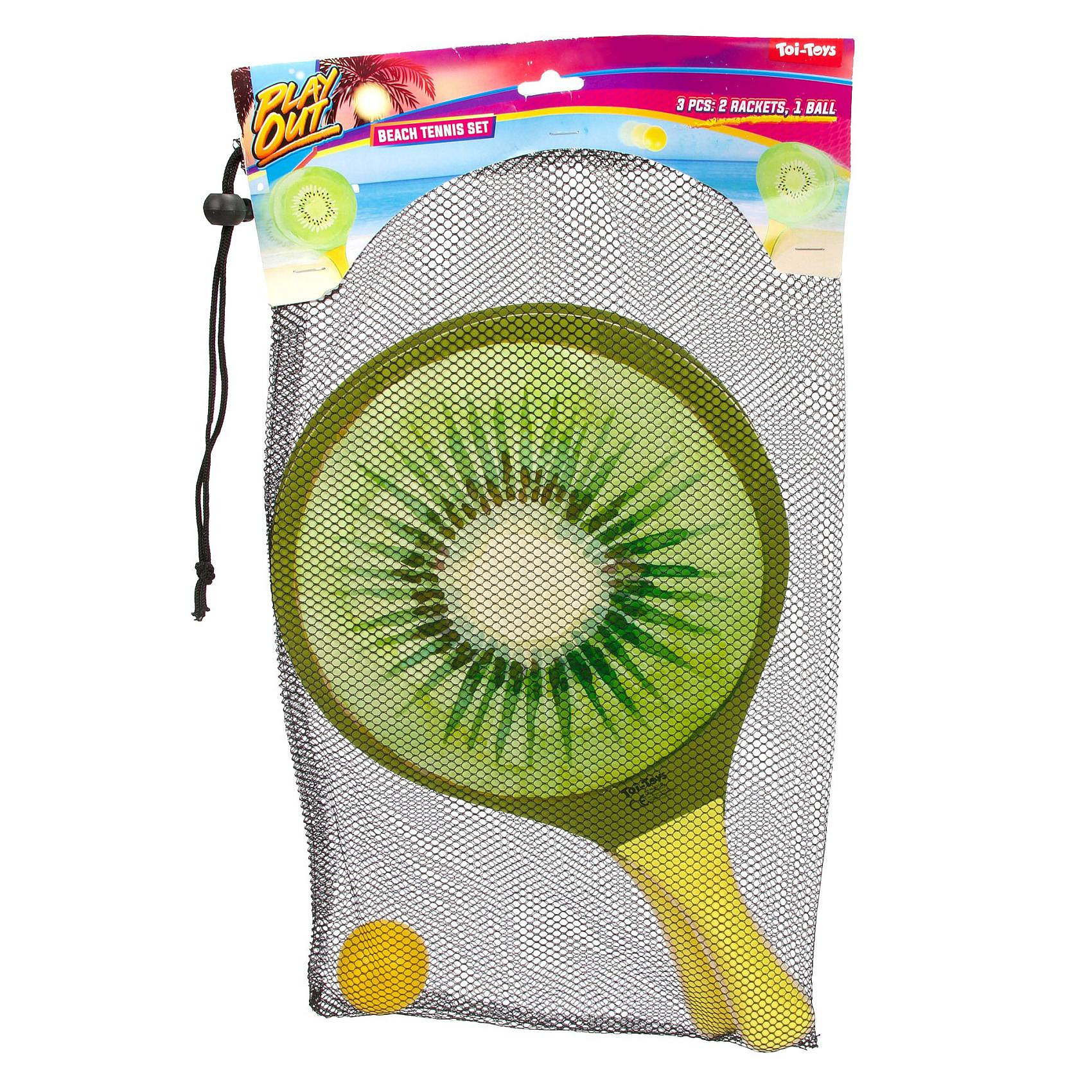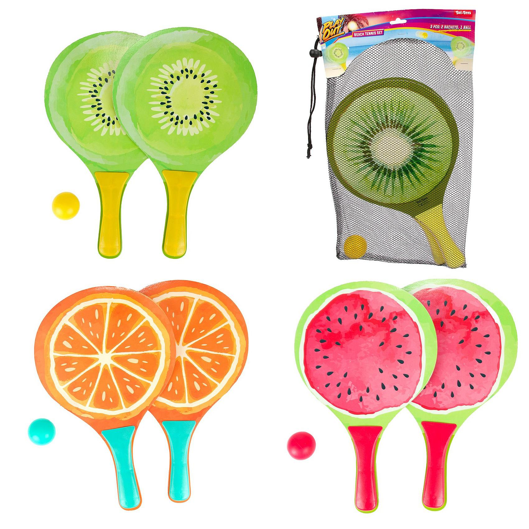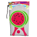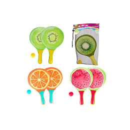 Sada na plážový tenis ovoce dřevěné 38cm 2 pálky + 1 míček 3 druhy v látkovém sáčku