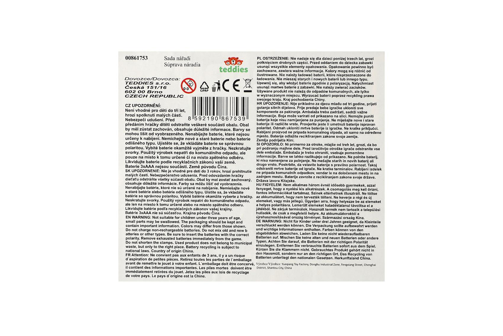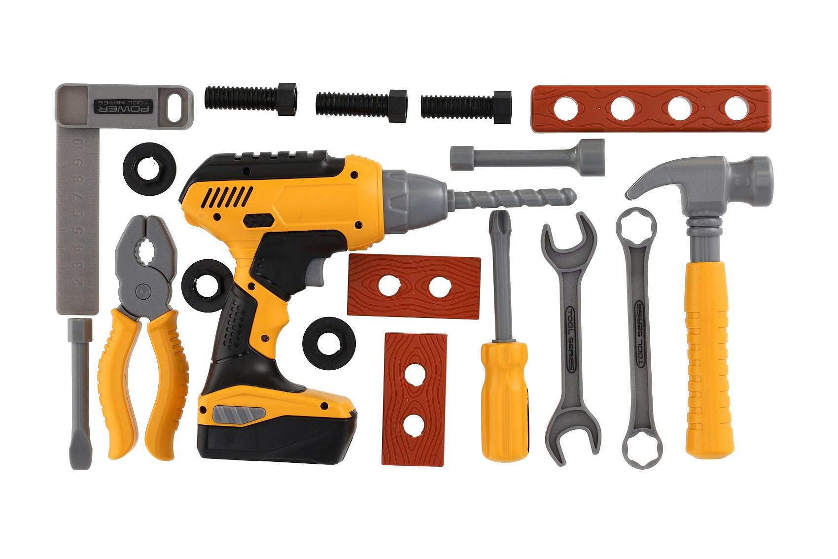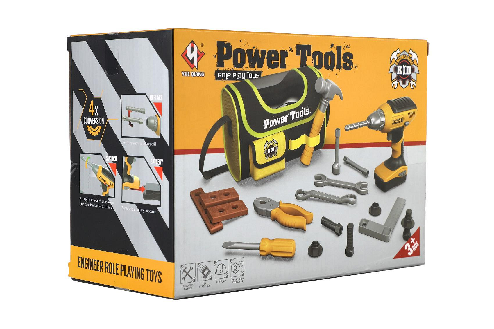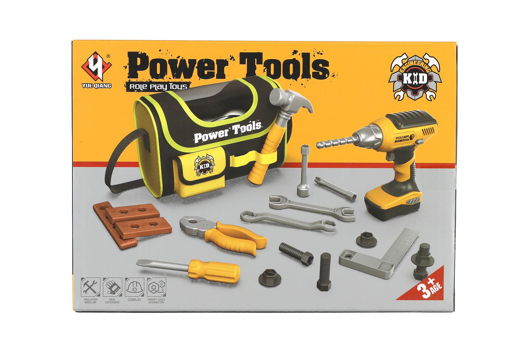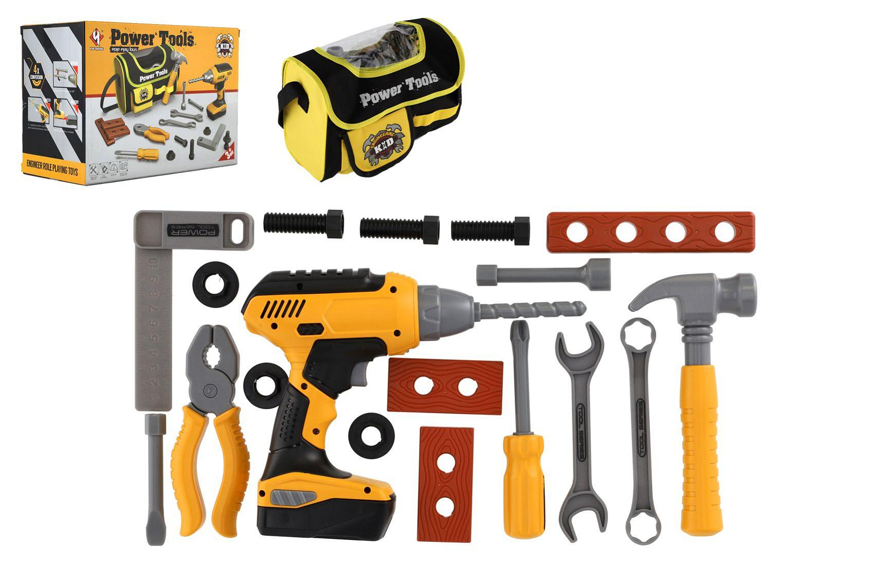 Sada nářadí plast s aku vrtačkou 16x17cm na baterie se zvukem s brašnou v krabici 24x17,5x12cm