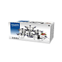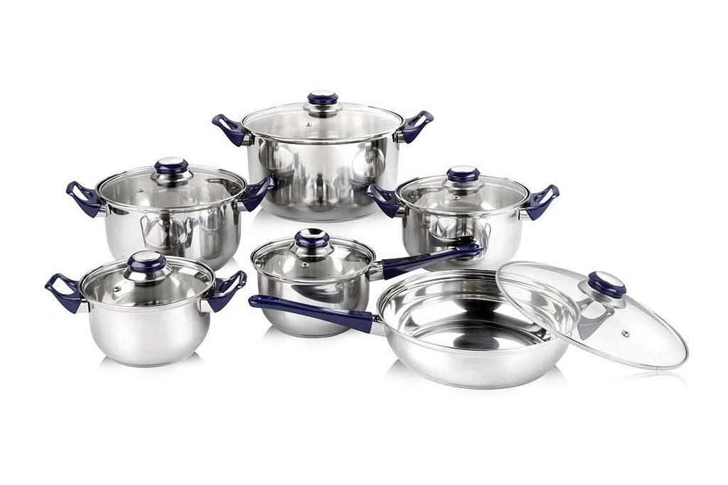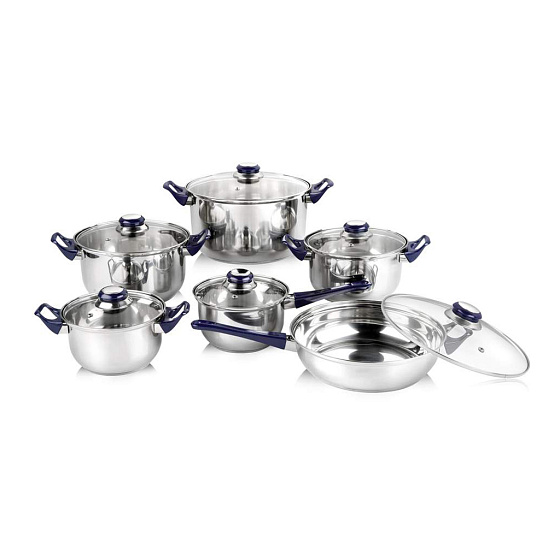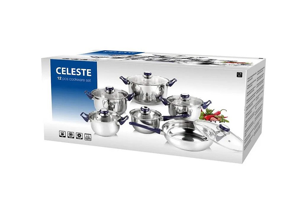 Sada nerezového nádobí pro kuchyně 12dílná sada nerezového nádobí CELESTE obsahuje: rendlík 13,5 x 7 cm, hrnec 15 x 8 cm, hrnec 15 x 8 cm, hrnec 17 x 9,5 cm, hrnec 21 x 11,5 cm, pánev 21 x 6 cm. Hrnce, rendlík i pánev mají čiré skleněné poklice s plastovými úchyty. Hrnce lze použít na všechny typy varných desek mimo indukce (dno neobsahuje protektor pro indukční varné desky). Vhodné do myčky nádobí.Více
