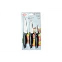 Tato sada nožů na jablka se skládá ze 3 kusů nožů, které jsou ideální pro snadné a efektivní krájení a loupení jablek. Každý z nožů má speciální tvar a design, který usnadňuje práci s jablky a umožňuje vám je krájet a loupat s minimálním úsilím. Sada obsahuje nož na krájení, nož na loupení a nož na vyndání jadérek. Tyto nože jsou vyrobeny z nerezové oceli, která zajišťuje dlouhou životnost a snadnou údržbu. Ergonomický design rukojetí nožů umožňuje pevný a pohodlný úchop, což zajišťuje bezpečné a přesné krájení.Více
