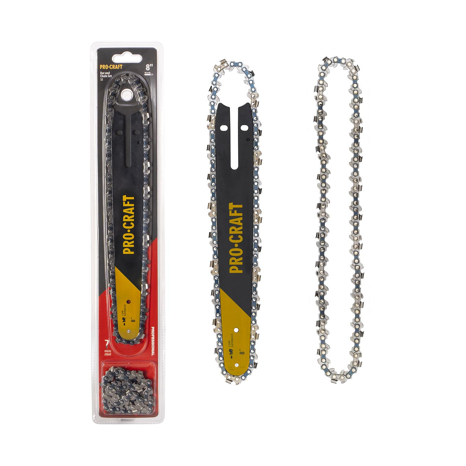 Sada pilových řetězů a lišty Procraft S8 obsahuje 8" lištu a dva řetězy pro precizní řezání. Kompati