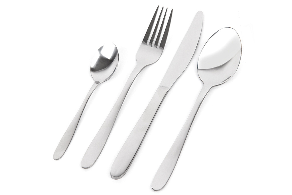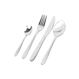Sada příborů Sada příborů z nerezové oceli obsahuje 4 nože, 4 vidličky, 4 lžíce a 4 čajové lžičky. Příbory mají lesklou povrchovou úpravu.