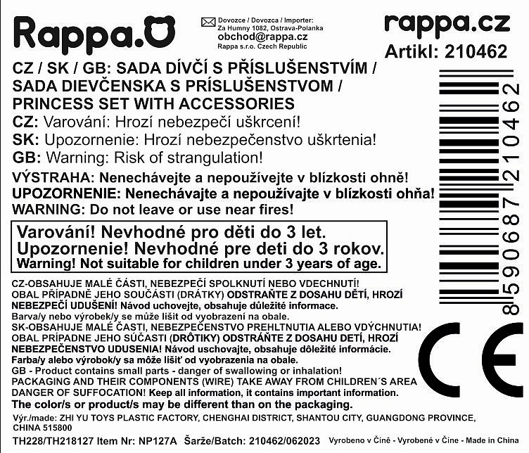 Exkluzivní sada pro všechny malé princezny! Krásná korunka s náušnicemi, náhrdelníkem, hůlkou a kabelkou. Doplňky jsou zdobeny růžovými prvky. Perfektní sada ke kostýmu! Doporučeno pro děvčata od 3 let.