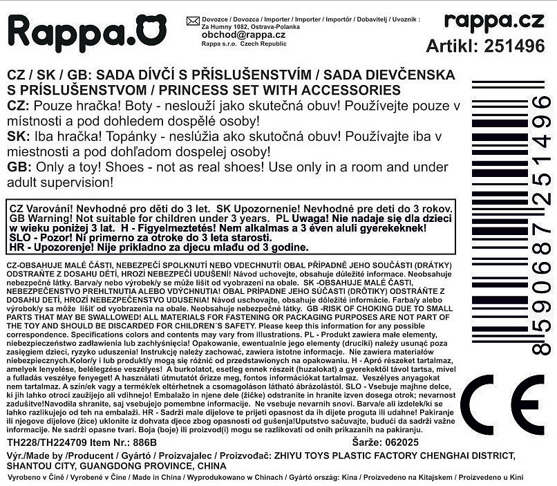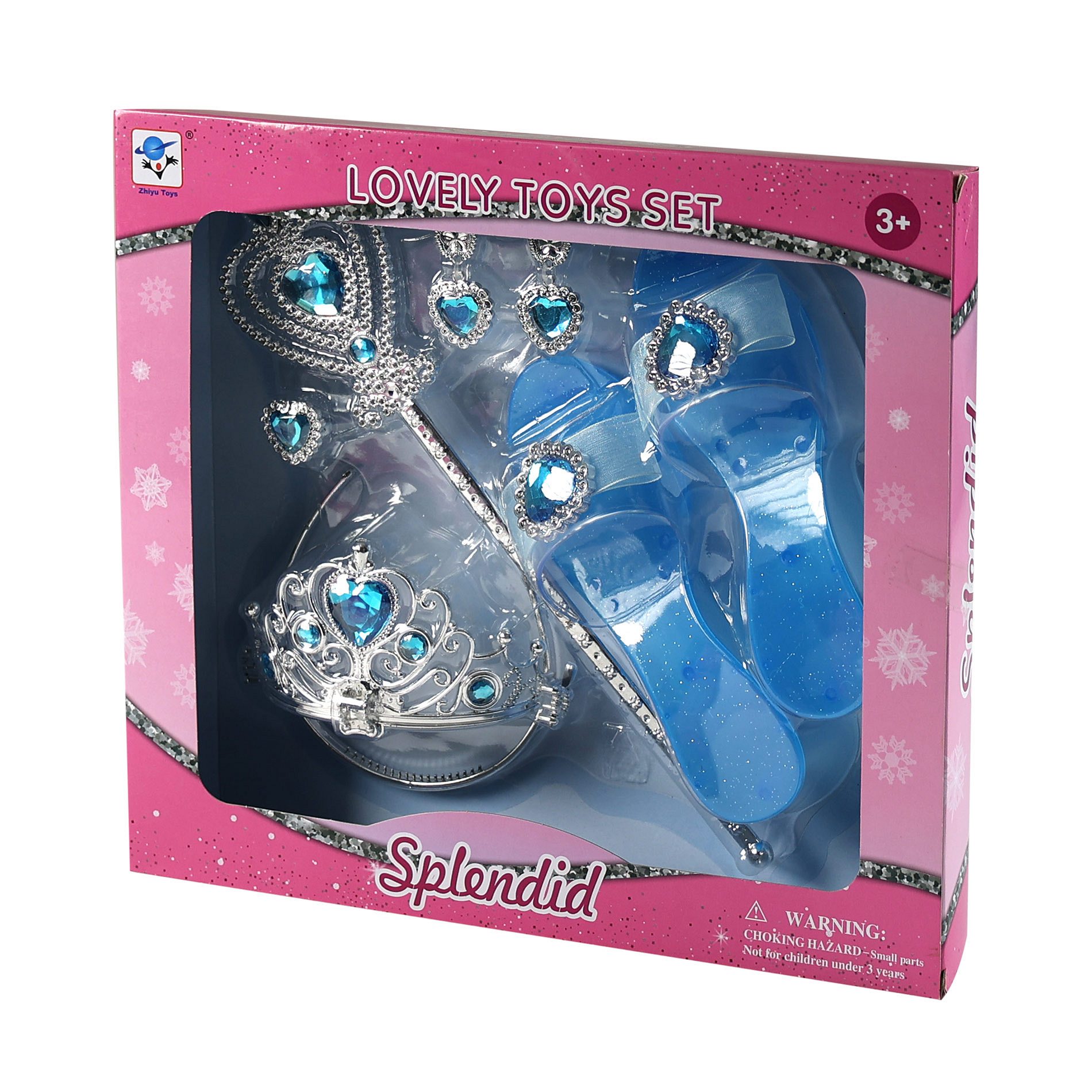 Proměň se v opravdovou princeznu! Tato krásná sada obsahuje vše, co malá parádnice potřebuje ke svým pohádkovým dobrodružstvím. Elegantní střevíčky, korunku, náušnice, prstýnek a kouzelnou hůlku. Díky stříbrno-modré barevné kombinaci působí celý set velmi slavnostně a okouzlujícím dojmem. Hodí se nejen na hraní doma, ale i na karnevaly, narozeninové oslavy či dětské párty.